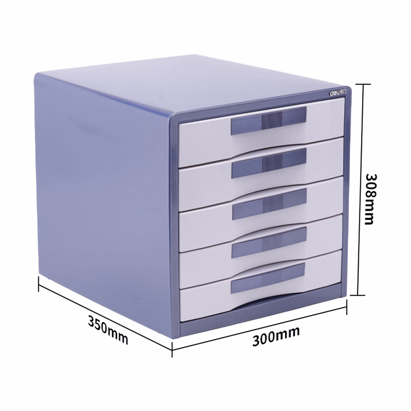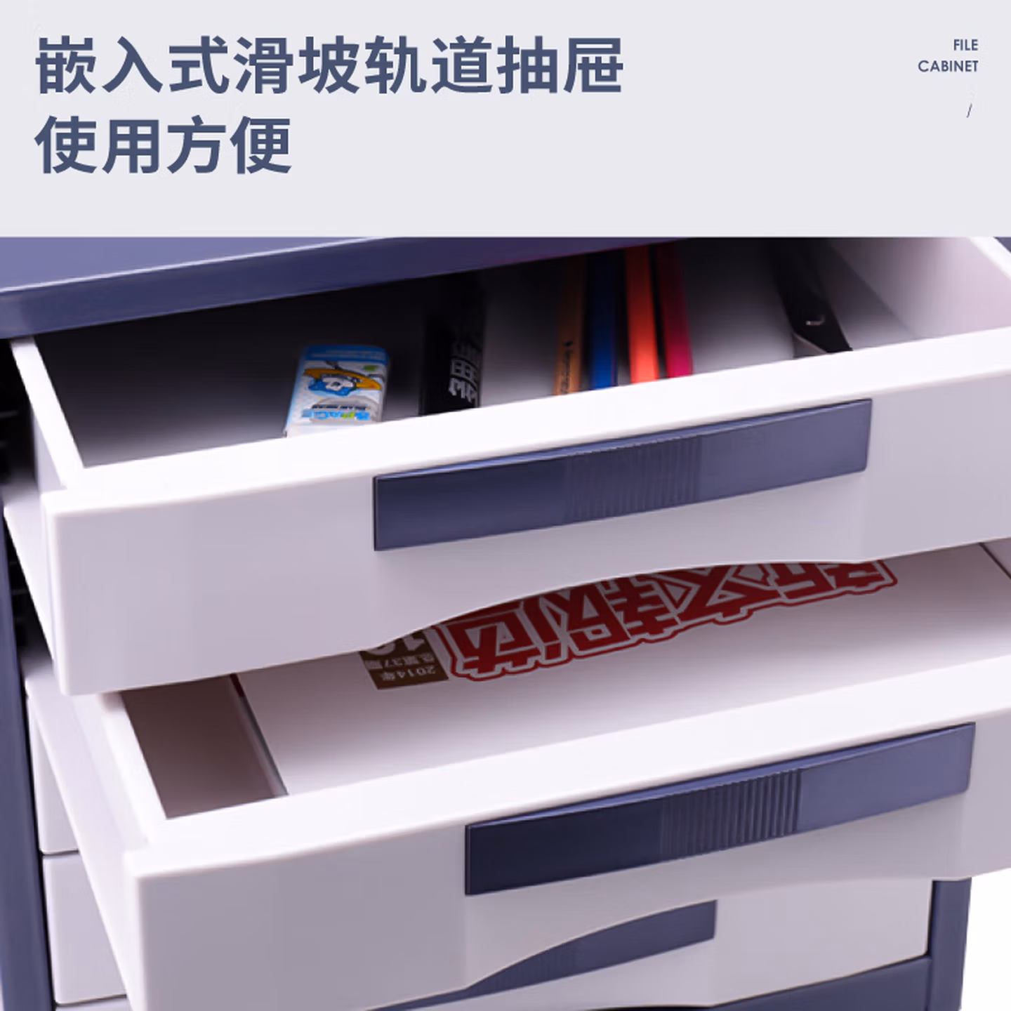 > 得力(deli)桌面文件柜塑料抽屉式资料柜分类整理箱收纳柜文件盒办公室a4桌面收纳文件柜档案柜 9702 5层金属带锁文件柜-蓝色