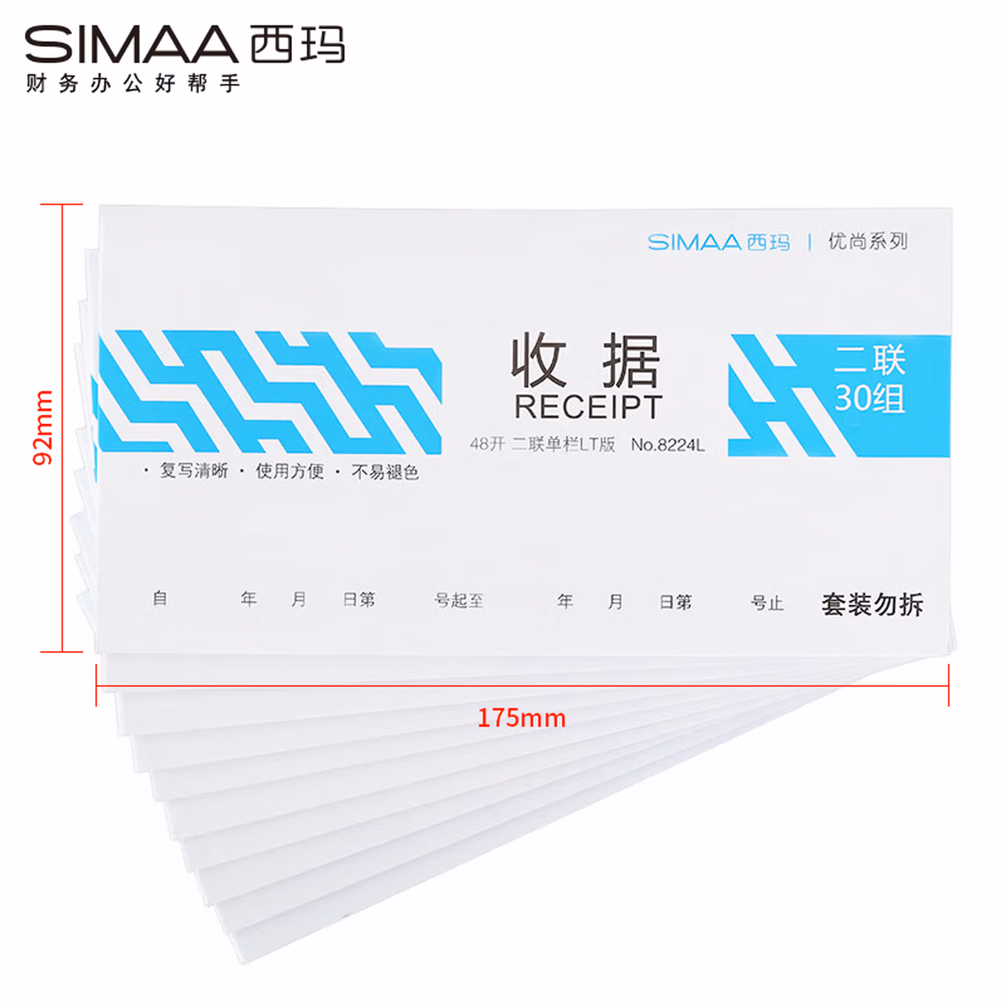 西玛(SIMAA)收据二联 48k 175*92mm30 组 10 本装 尚优精品(蓝)无碳复写单据收款送货单据本