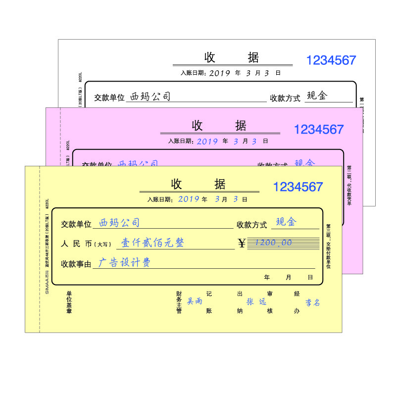西玛(SIMAA)收据三联 48k 175*92mm20 组 10 本装 尚优精品(蓝)无碳复写单据收款送货单据本
