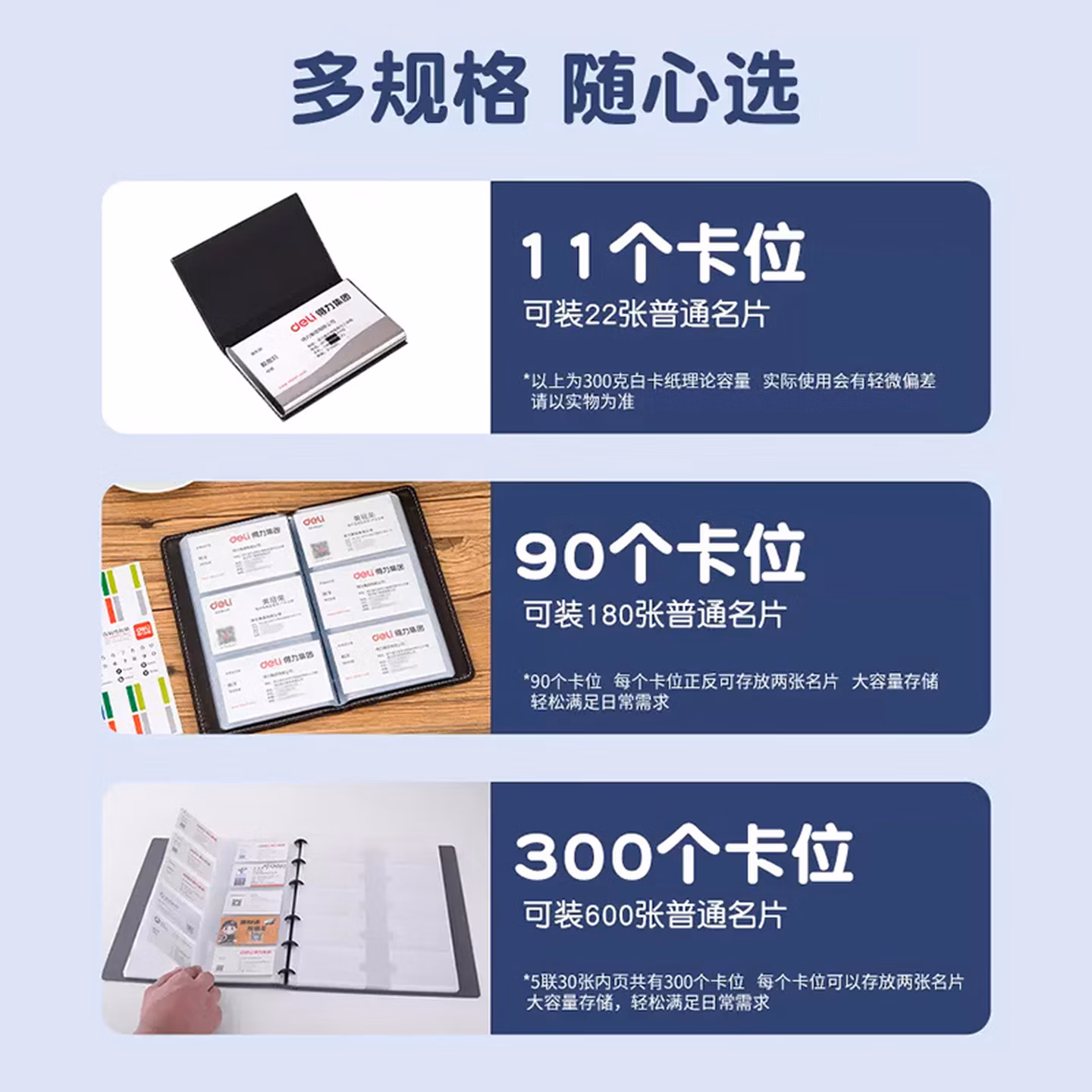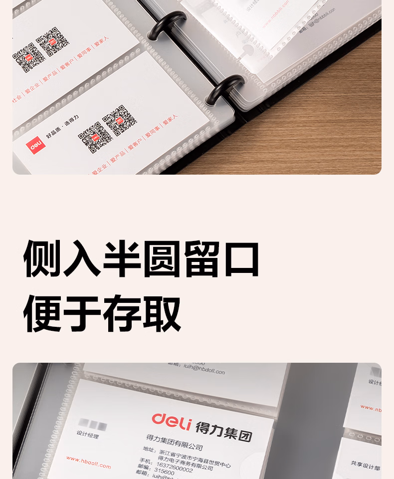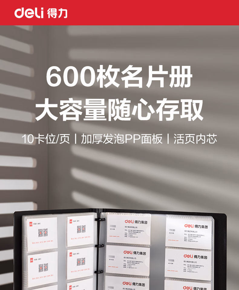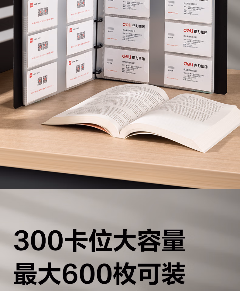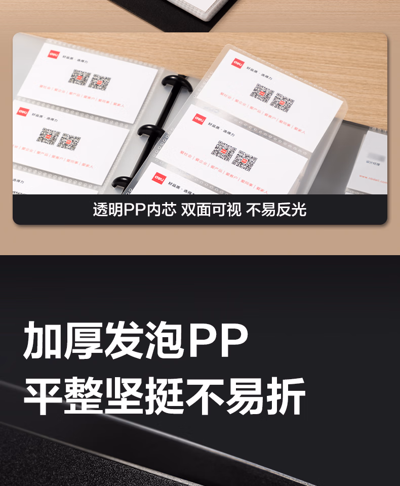 > 得力(deli)名片册卡包收集册男士商务高端名片夹多卡位名片收纳册桌面立式高档大容量皮质商务夹信用会员卡 普通皮-墨黑-180张 5783