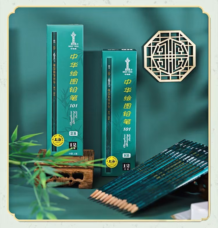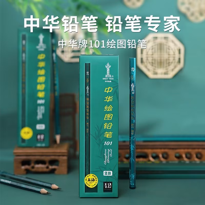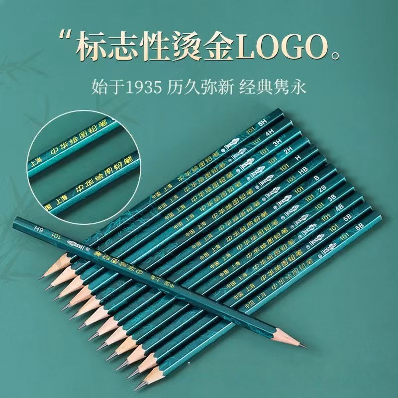 > 中华101铅笔定制刻字刻名字小学生专用一二三年级书写HB绘图2H考试涂卡2B无铅毒六角绿杆儿童文具礼物 HB【绿杆经典101】 12支共一盒