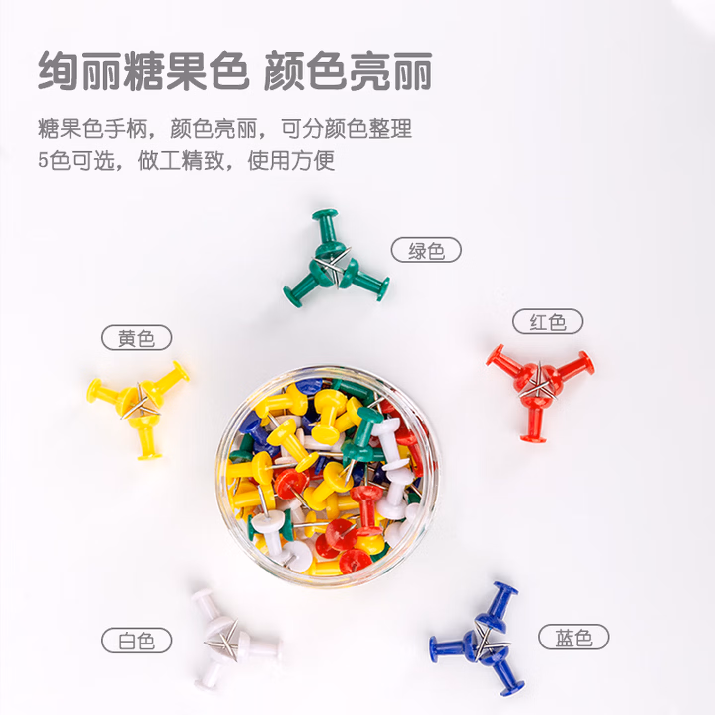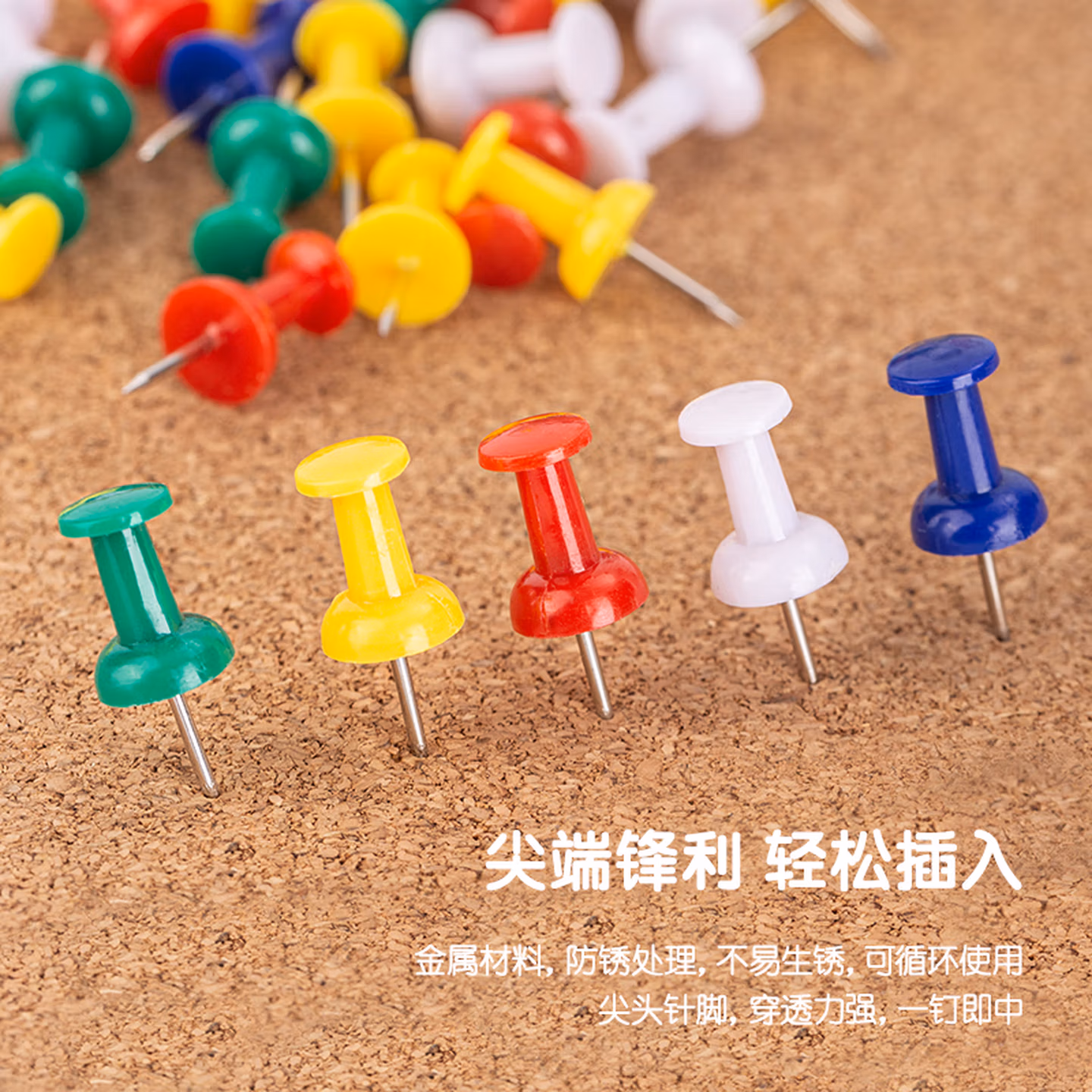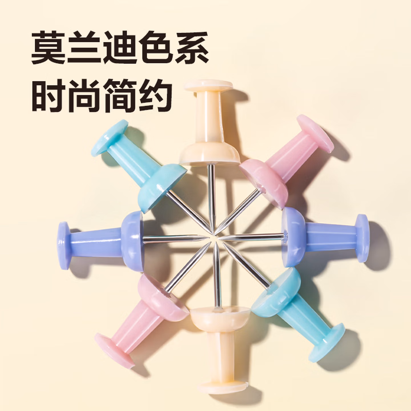 > 得力(deli)莫兰迪彩色工字钉 软木画板按钉 绘画图钉 可钉墙无痕泡钉 大头钉/照片钉 35枚/盒 0021-A