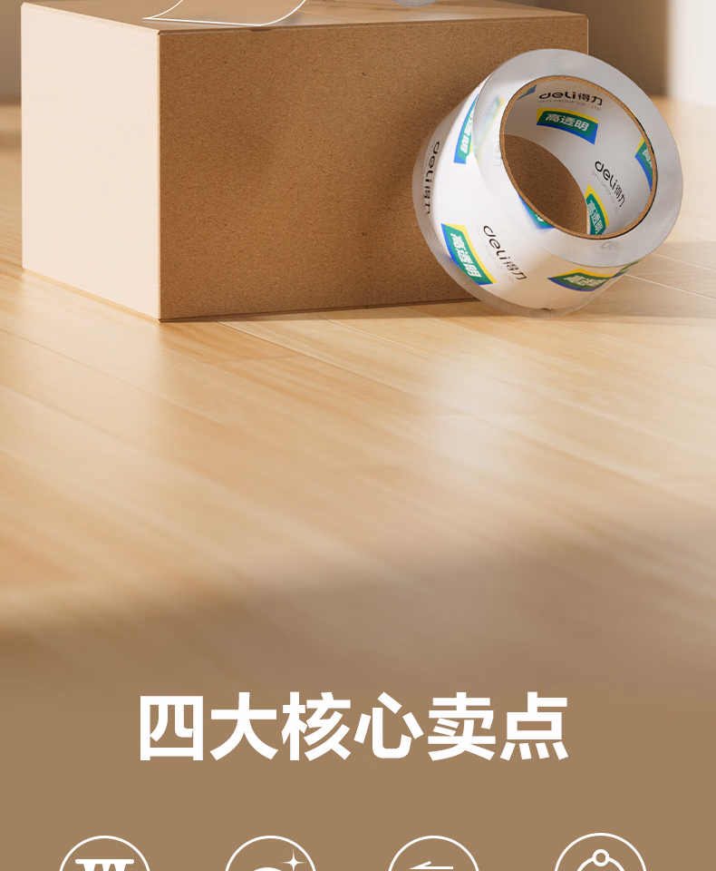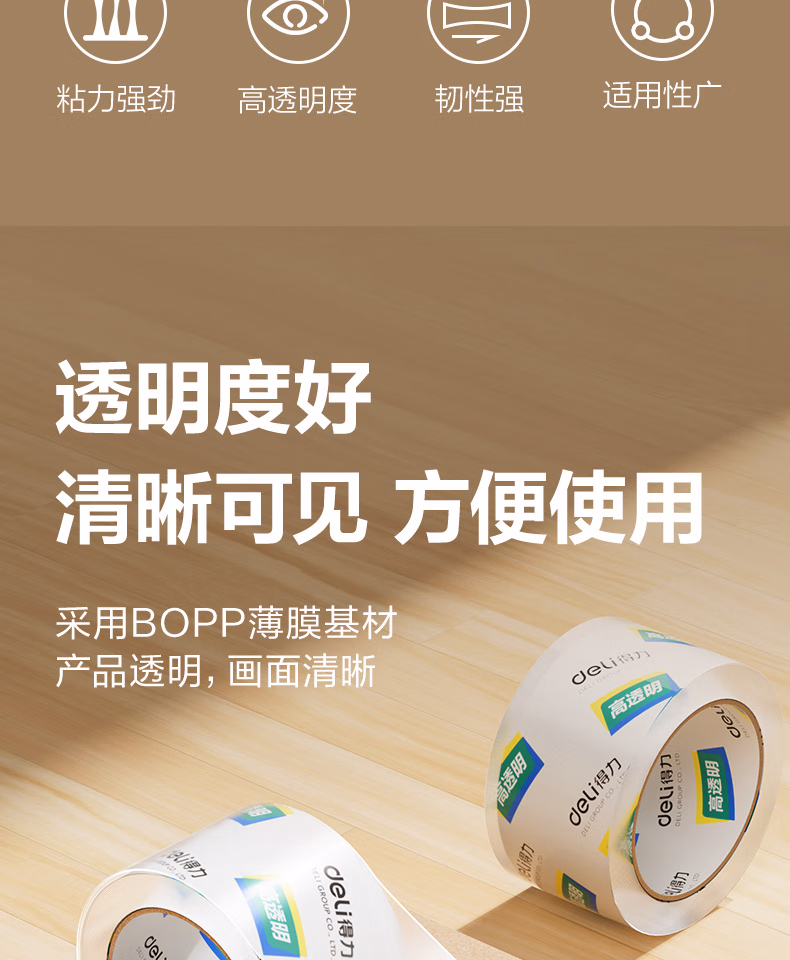得力 得力 30369 高透明度封箱胶带 60mm*100y(91.4米)