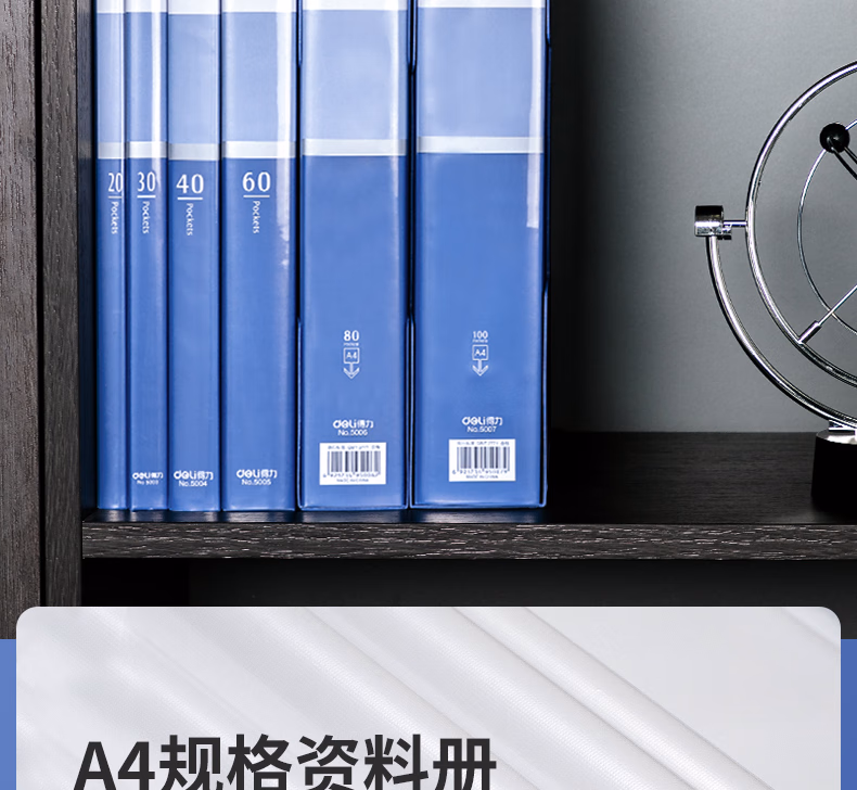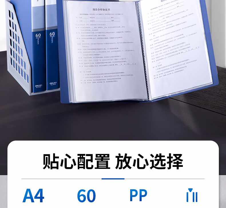 > 得力(deli)【超级爆款】A4/60页商务资料册 透明插袋文件册活页文件收纳袋活页插袋文件夹 办公学习用品5005