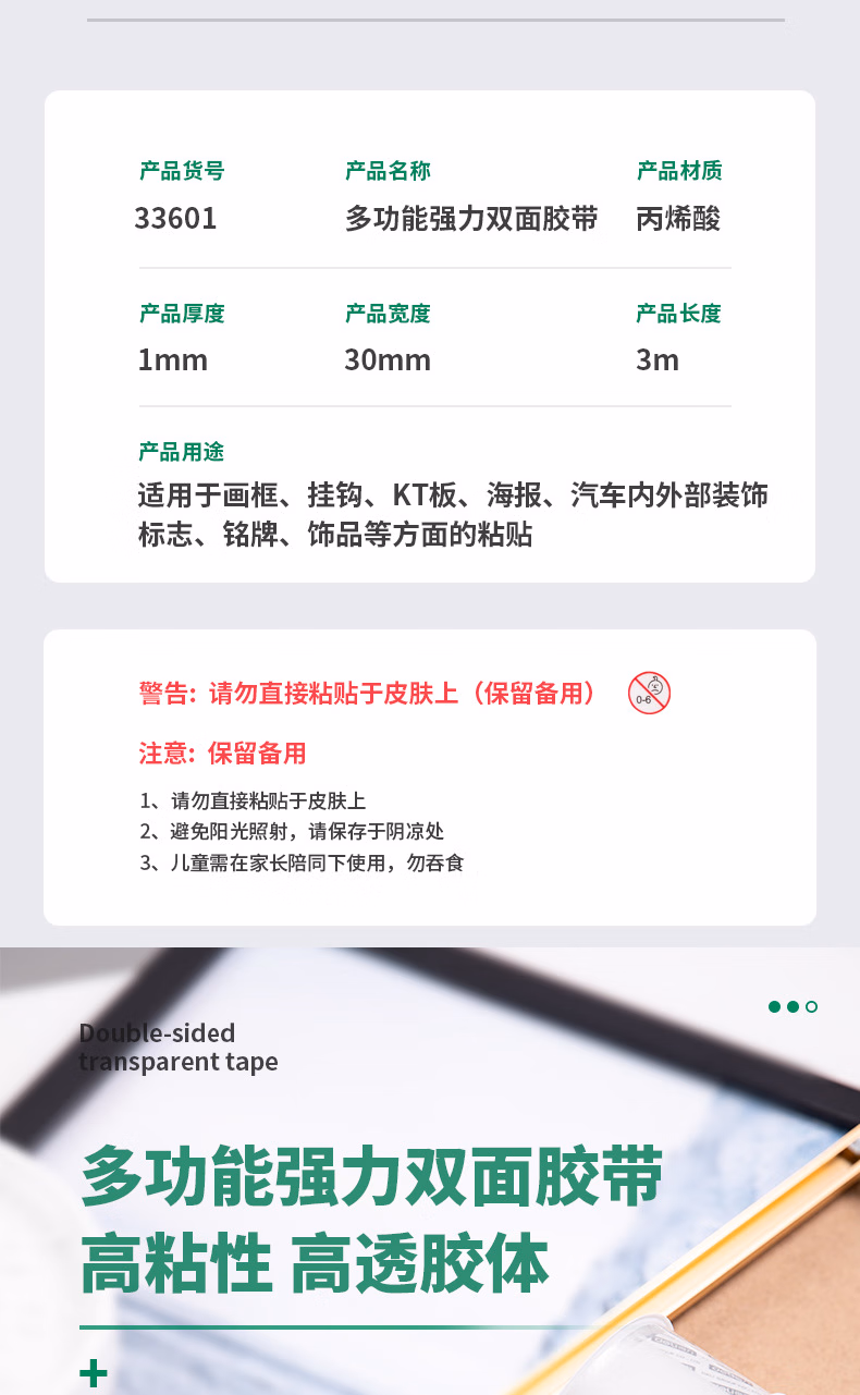 得力 得力33601双面透明胶带