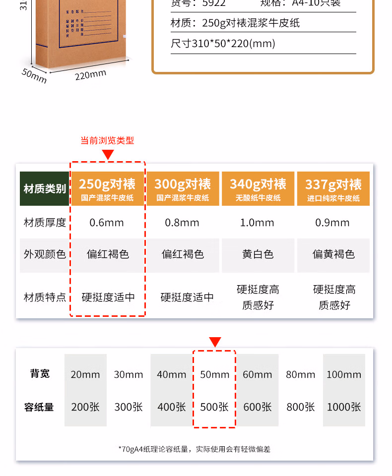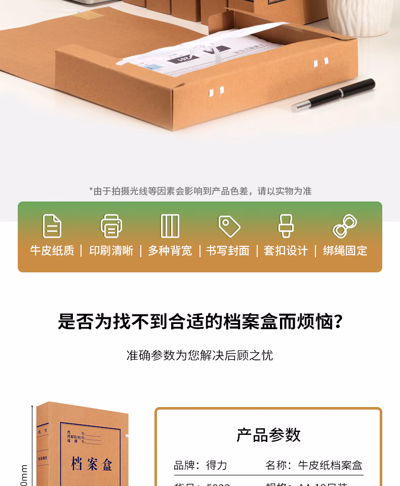 > 得力(deli)A4高质感250g混浆牛皮纸档案盒资料盒加厚文件收纳盒财务凭证盒 【背宽5cm】10个加厚款63207