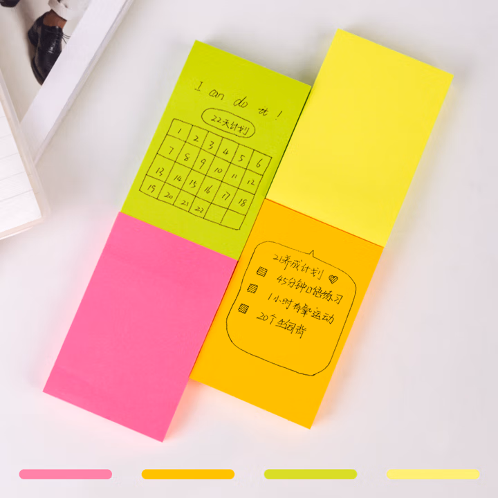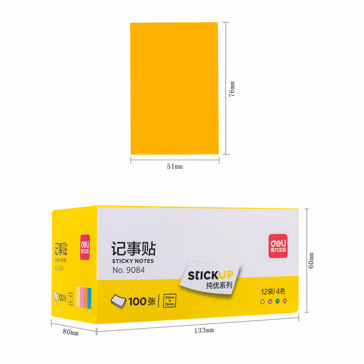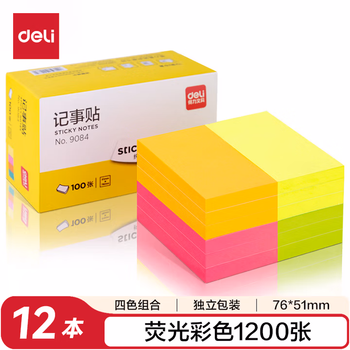 得力(deli)12本1200张荧光彩色便利贴 76*51mm便条纸/ 记事贴/ 自粘留言本 办公用品 9084