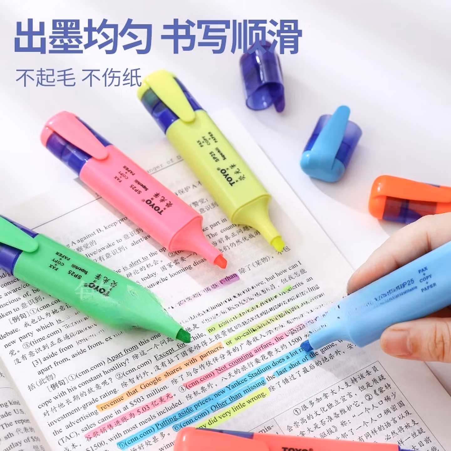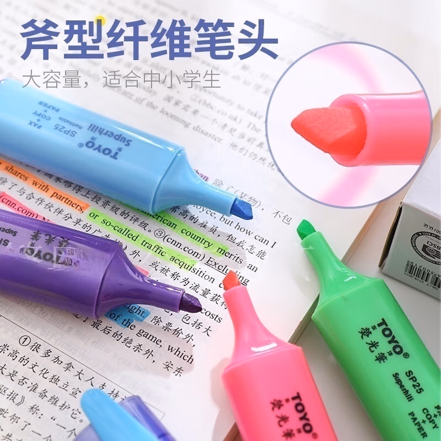 > 东洋10支盒装 SP25荧光笔彩色笔7色荧光笔标记笔斜头划重点做标记醒目笔学生用创意多功能淡色手账笔 【每色各1支】7支装