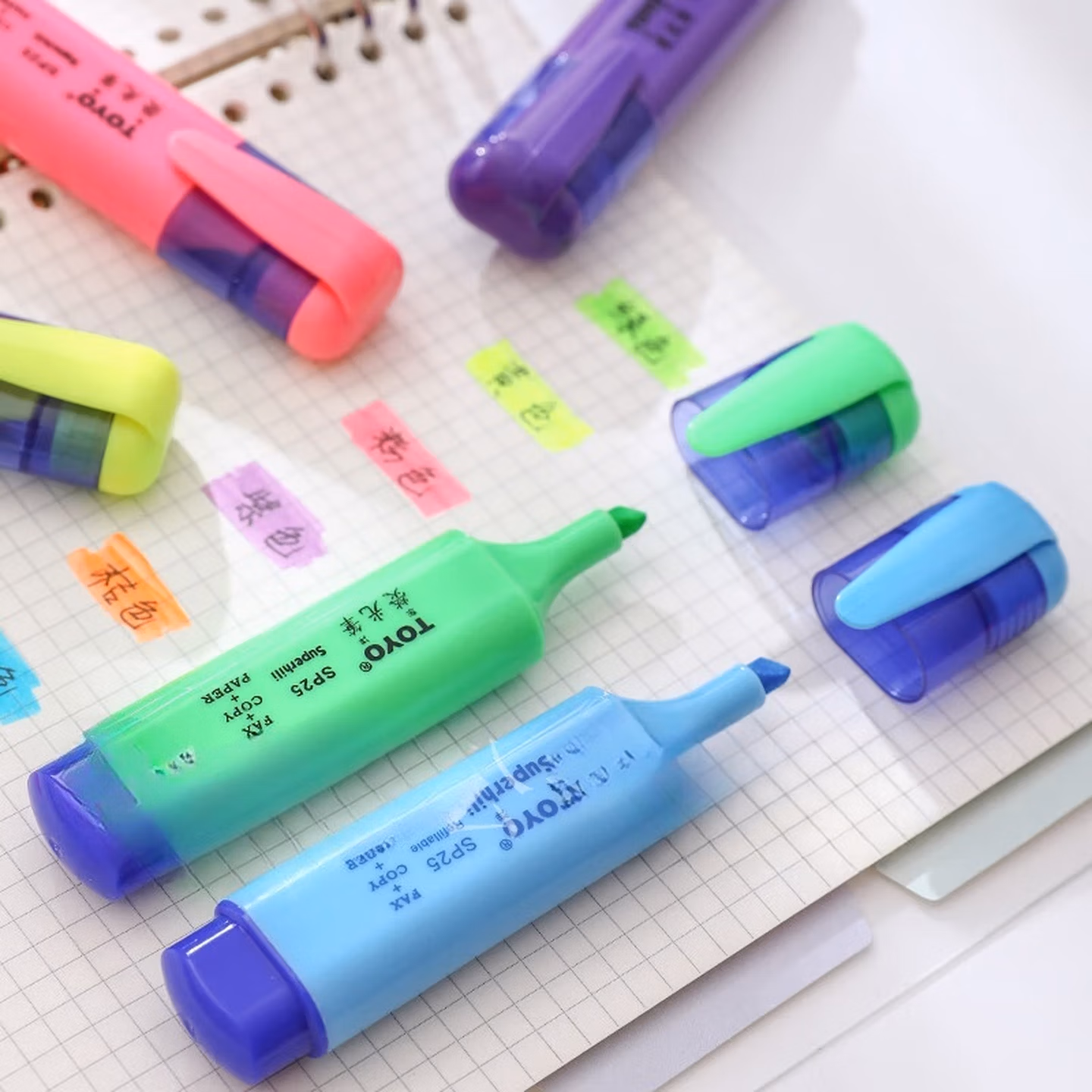 东洋10支盒装 SP25荧光笔彩色笔7色荧光笔标记笔斜头划重点做标记醒目笔学生用创意多功能淡色手账笔 【每色各1支】7支装