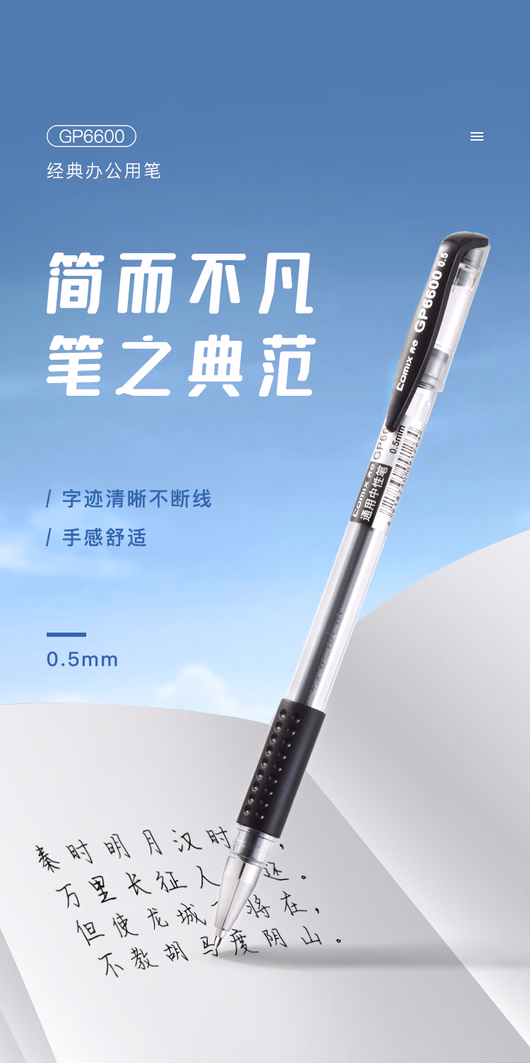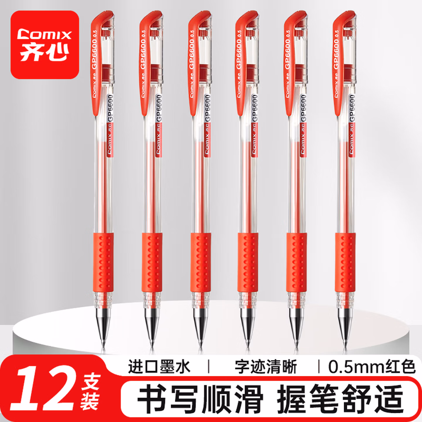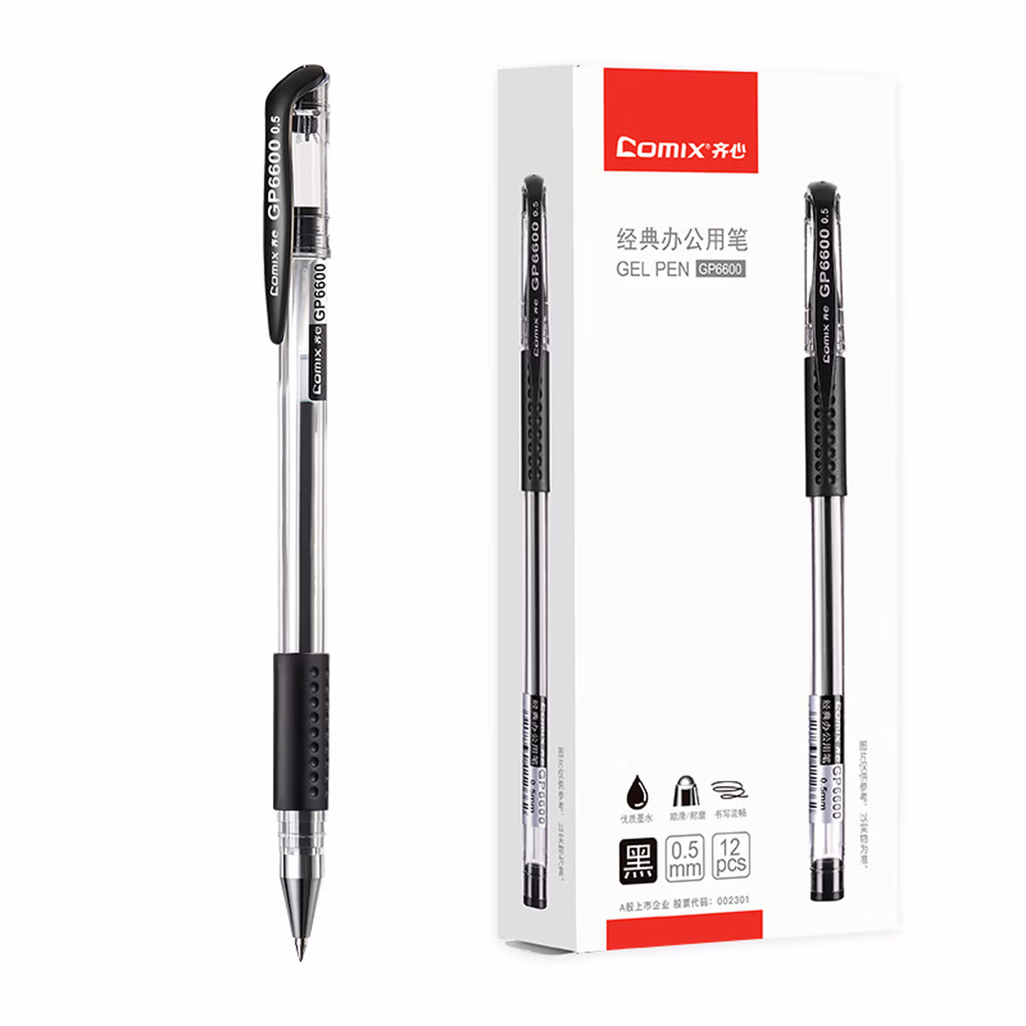 > 齐心(Comix) 经典子弹头办公中性笔/水笔/签字笔 0.5mm书写工具12支/盒 黑色 GP6600