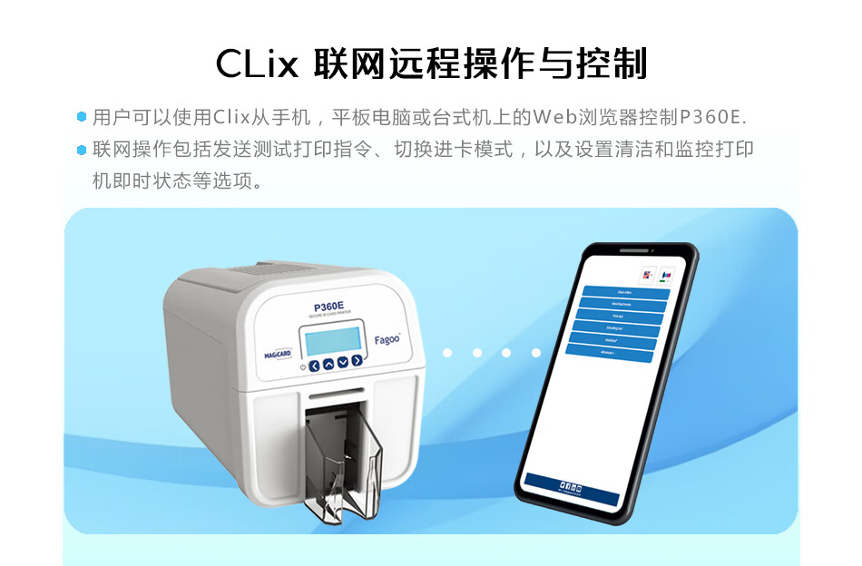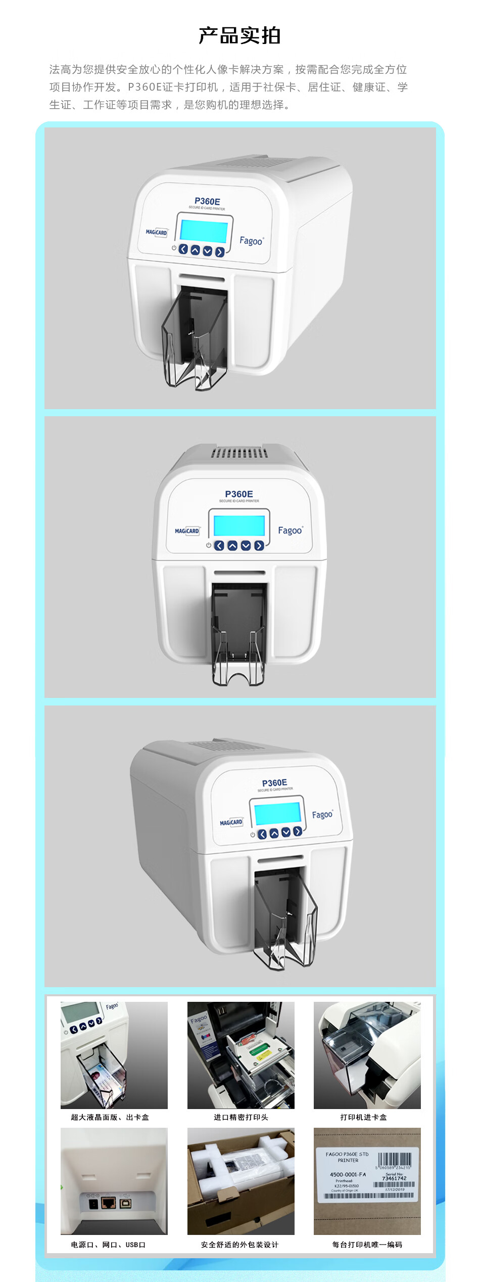 > 法高FAGOO P360E多功能证卡打印机、IC卡员工卡、健康卡、社保卡、出入证门禁卡、会员卡制卡机 300dpi单面标机