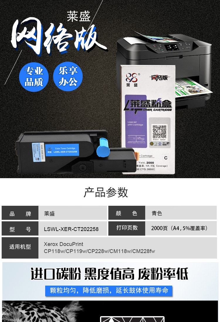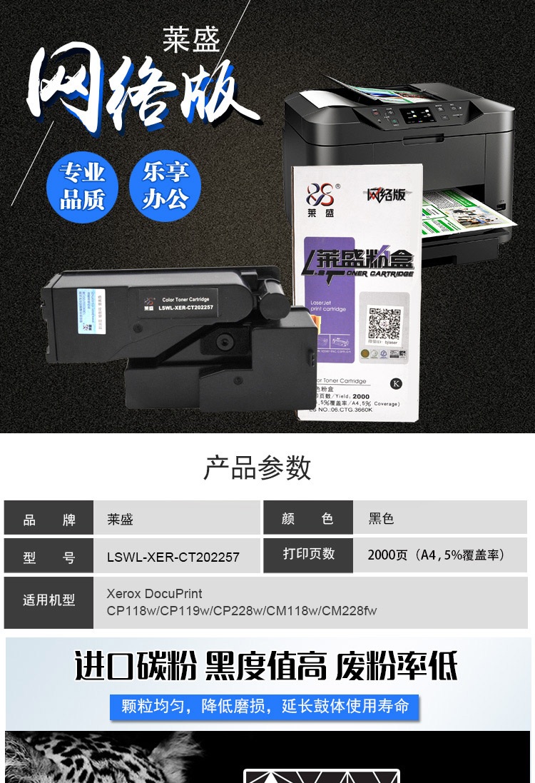 > 莱盛 LSWL-XER-CT202257 粉盒彩色硒鼓 黑色Xerox DocuPrint CP118w/CP119w/CP228w/CM118w/CM228fw