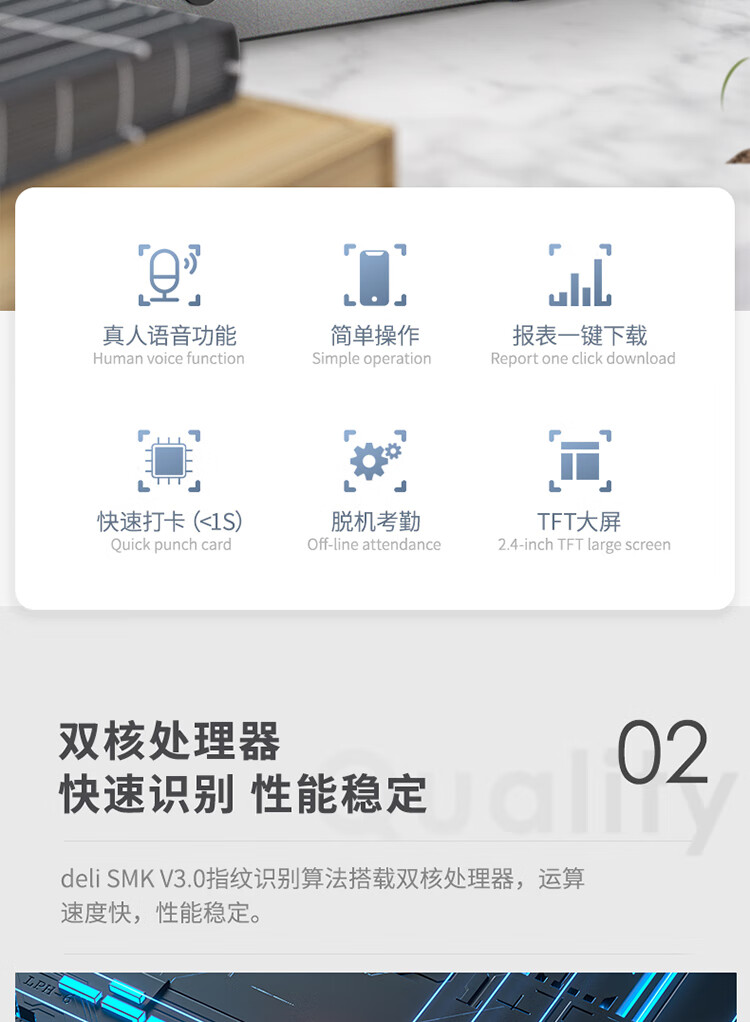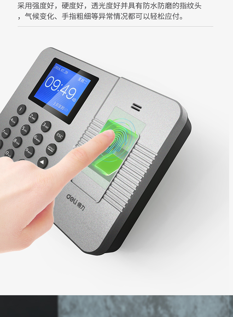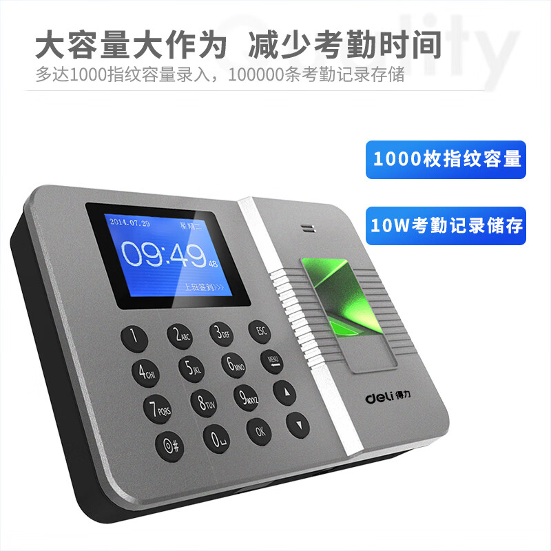 > 得力(deli)智能指纹考勤机 自动生成报表 停电打卡套装33113+13899