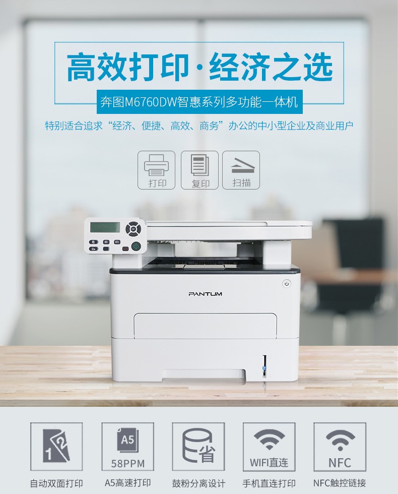> 奔图(PANTUM)M6760DW 黑白激光多功能一体机 打印复印扫描有线无线网络双面打印 M6760DW(无线/有线连接)