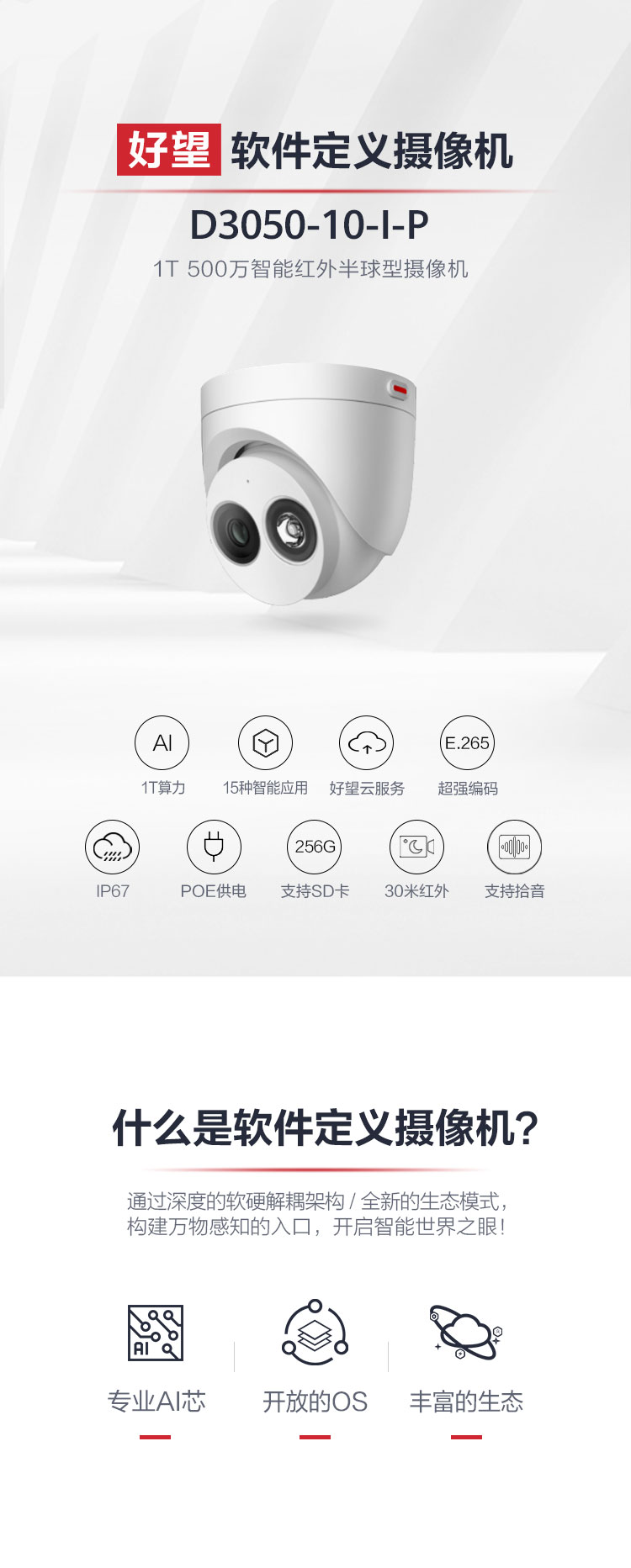 > 华为智能安防监控500万高清摄像头POE供电红外补光夜视室内家用商超半球型可拾音D3050-10-I-P(2.8mm)