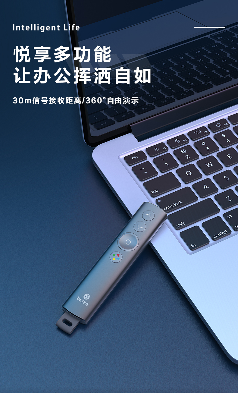 > 毕亚兹 Spotlight 无线翻页笔 演示器投影笔 非激光笔 演讲神器 放大聚焦液晶屏可显 bi9