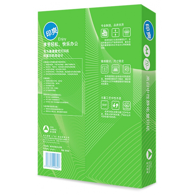 > 亚太森博 特级印爽 A4 70G 复印纸 500张/包 8包/箱