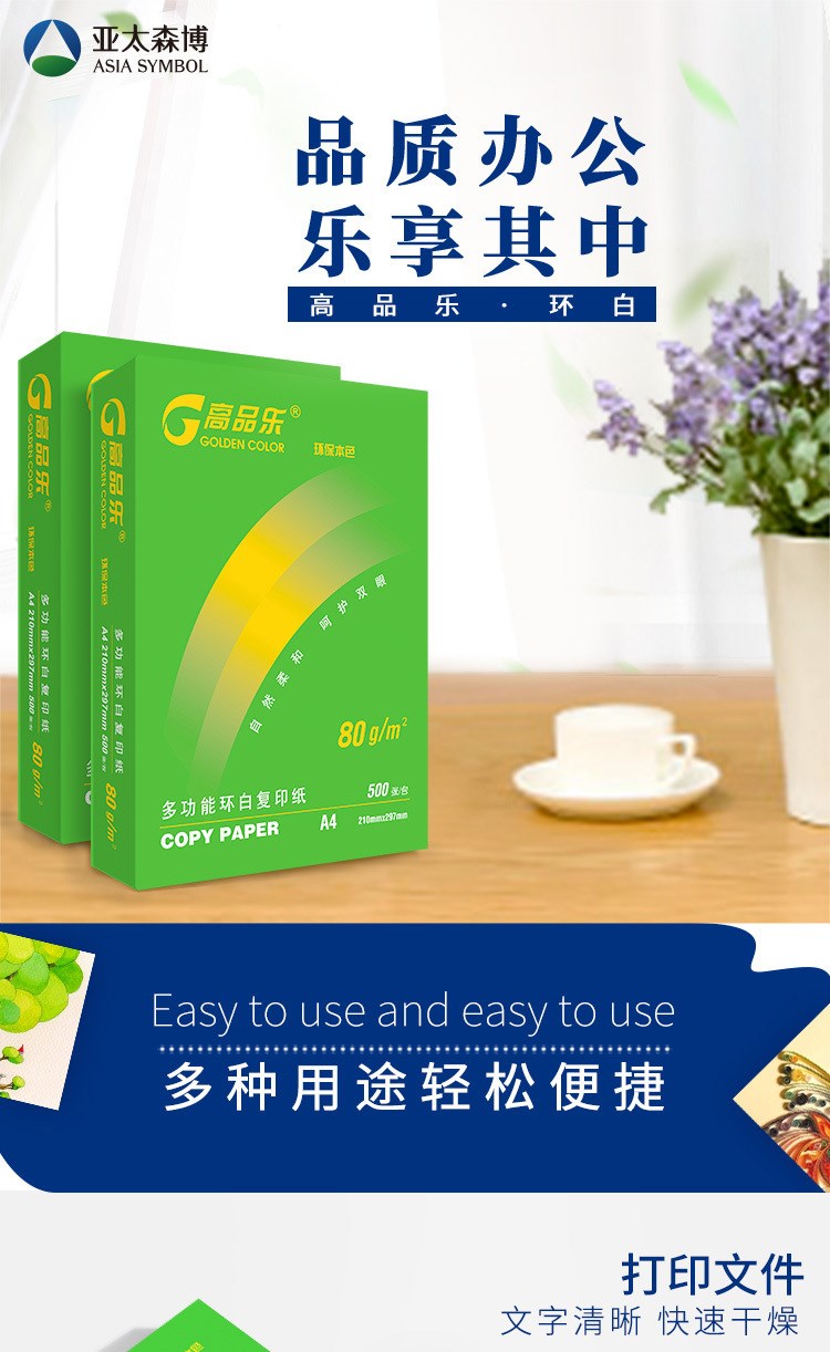 > 亚太森博环白高品乐 打印复印纸 A4纸 70g80g白纸 2500张整箱 A4 70G 2500张/箱