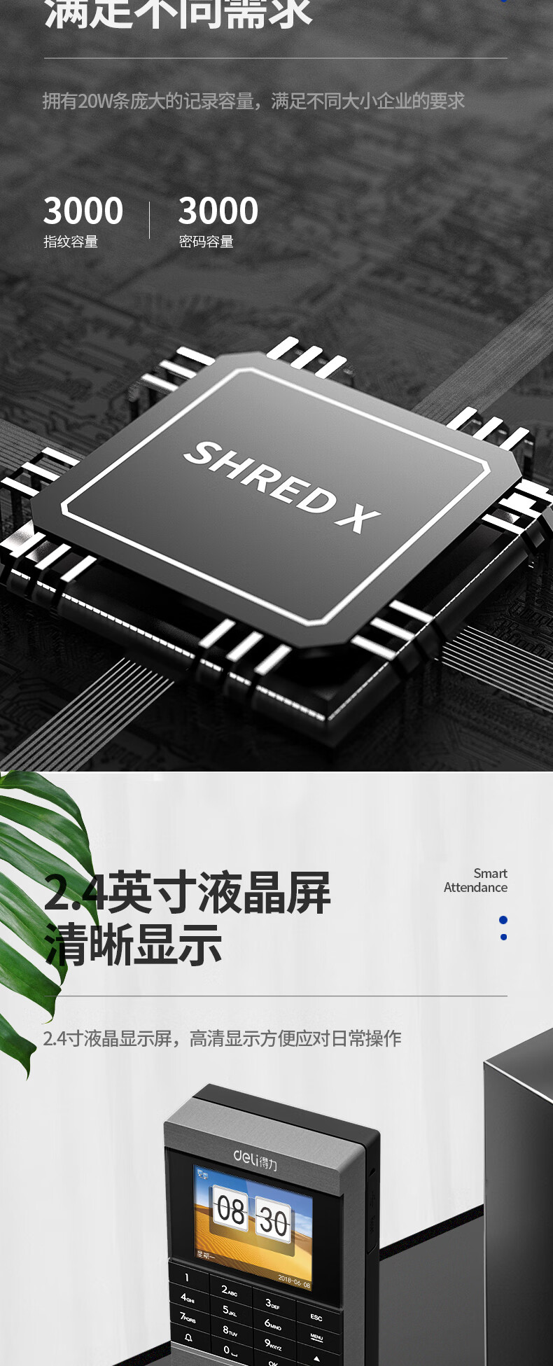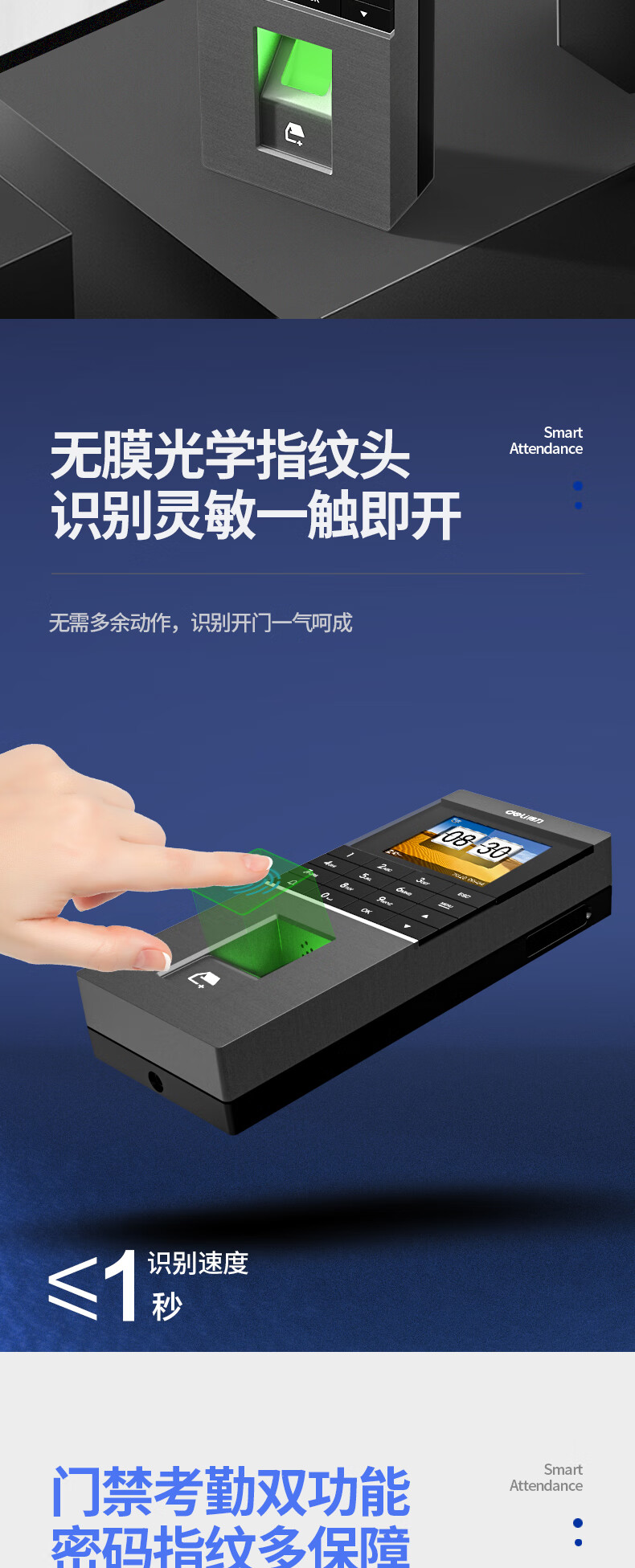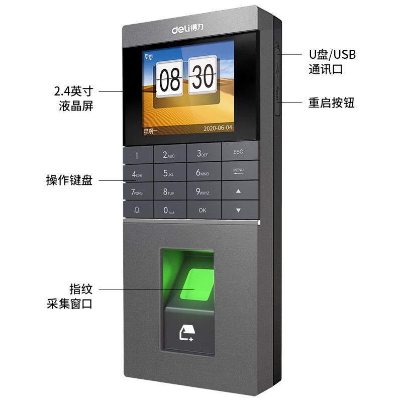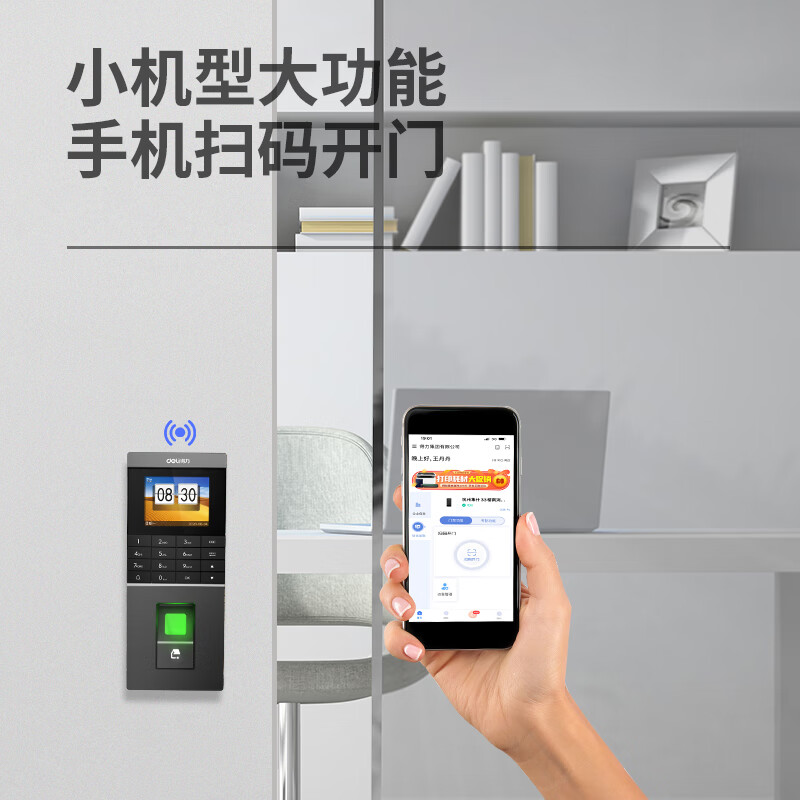 得力(deli)门禁考勤一体机 wifi联网 云门禁机打卡机 单开玻璃门电插锁套装13753CW