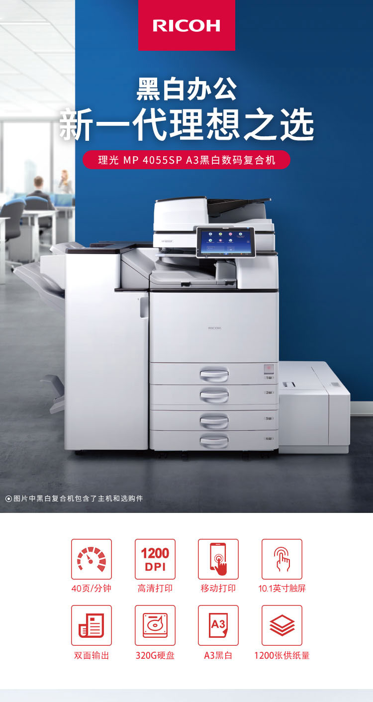 > 理光(Ricoh)MP 2555SP A3黑白数码复合机 标配 输稿器 (免费上门安装 免费上门售后)