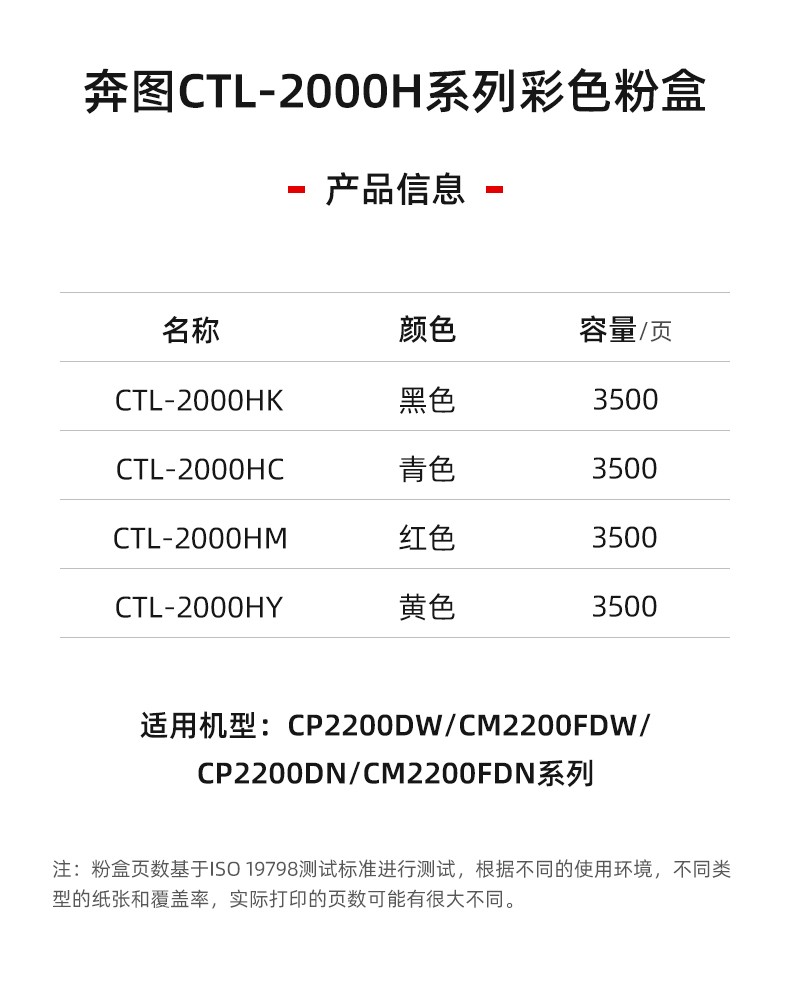 > 奔图(Pantum)CTL-2000HK 黑色粉盒 适用于CP2200DW/CM2200FDW/CP2200DN/CM2200FDN