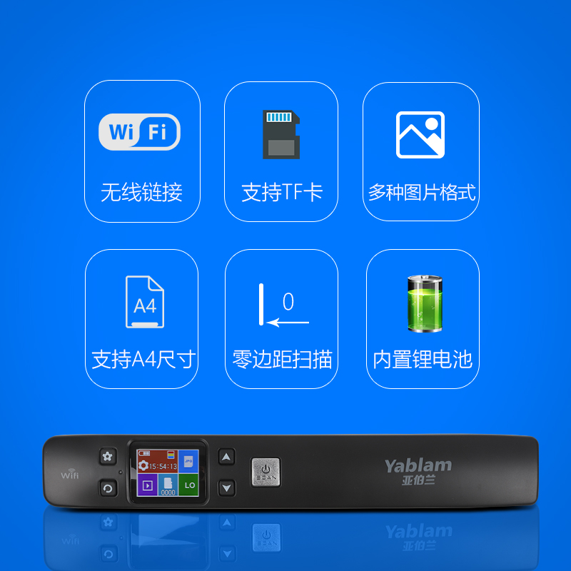 > 亚伯兰 扫描仪 便携式 手持式A4扫描笔彩色书刊 零边距 高速扫描无线高清 书籍文件办公 黑色普通版