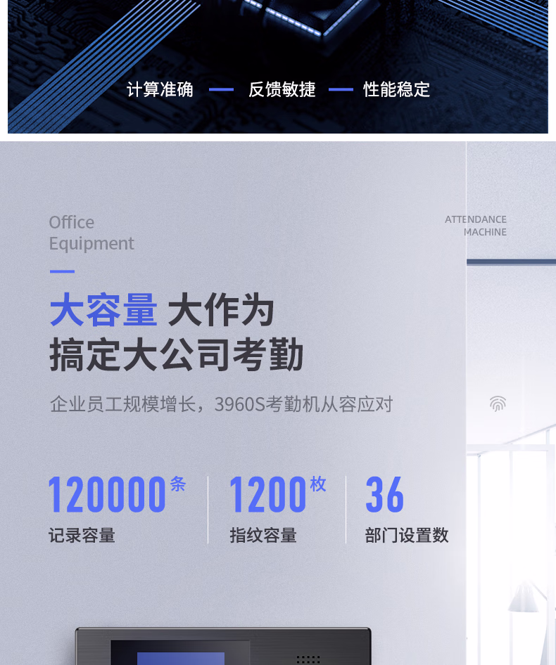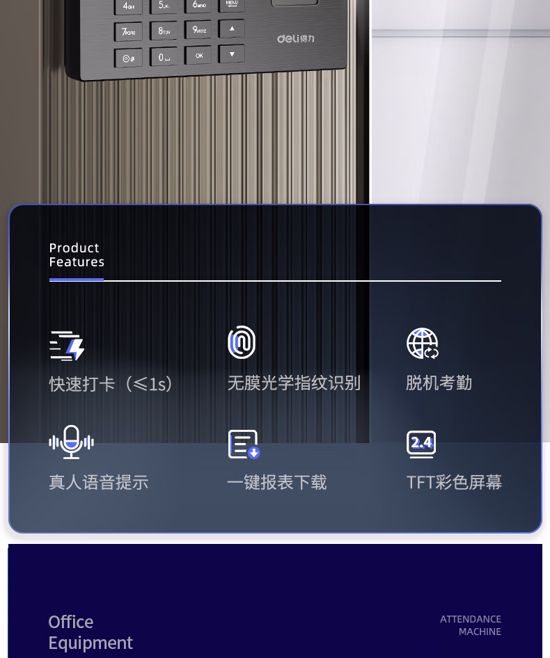 > 得力考勤机 指纹打卡机 免软件免网络 三步简单设置 自动生成报表 U盘导报表 1200枚指纹考勤机3960S