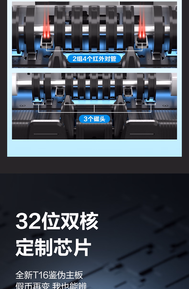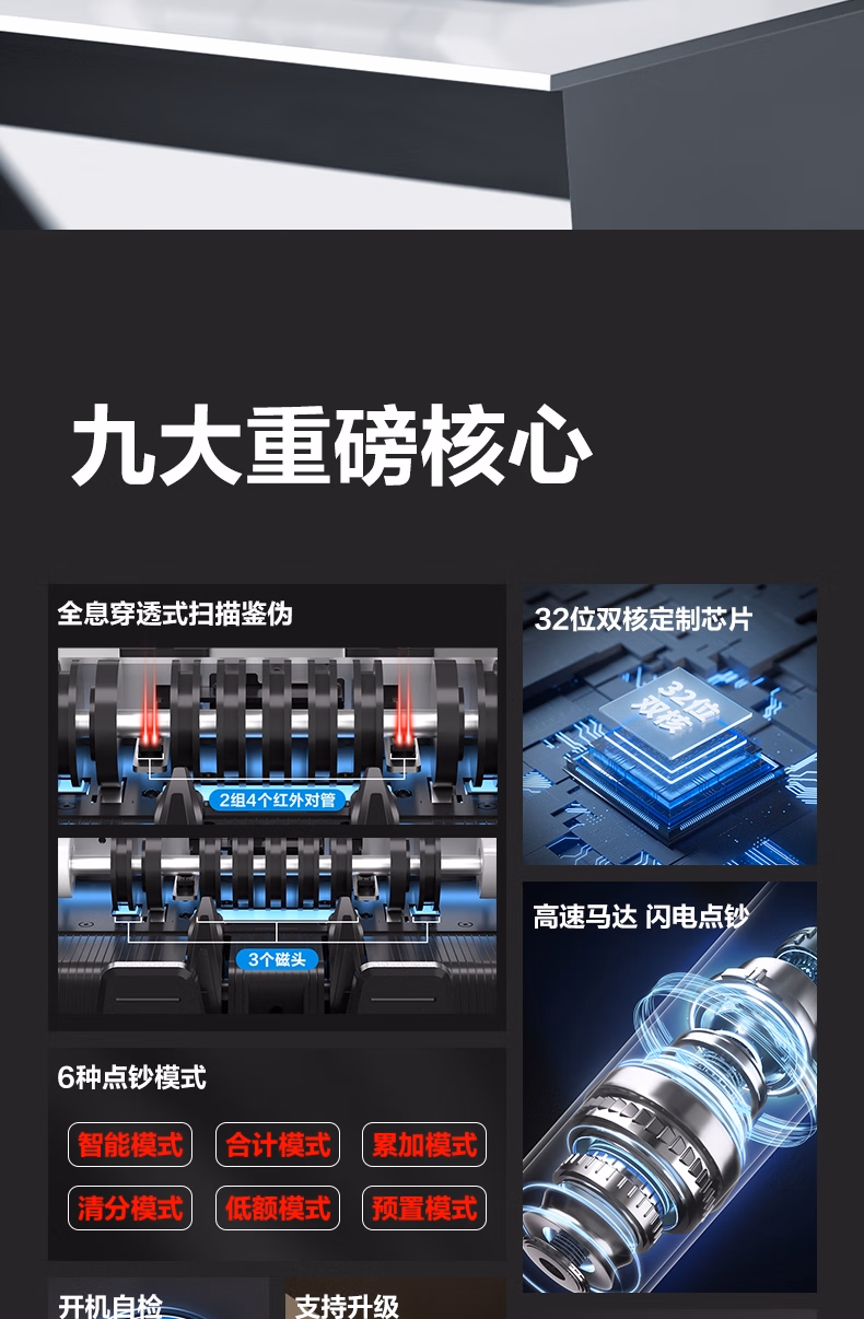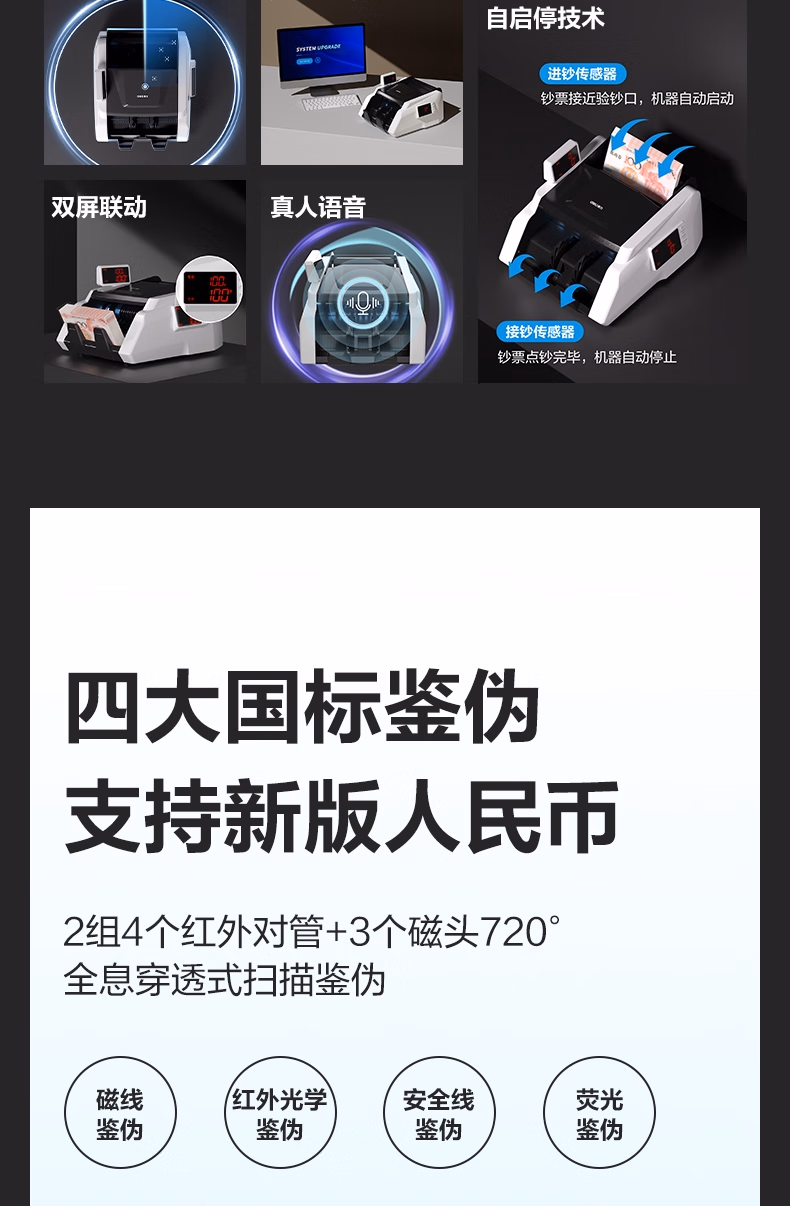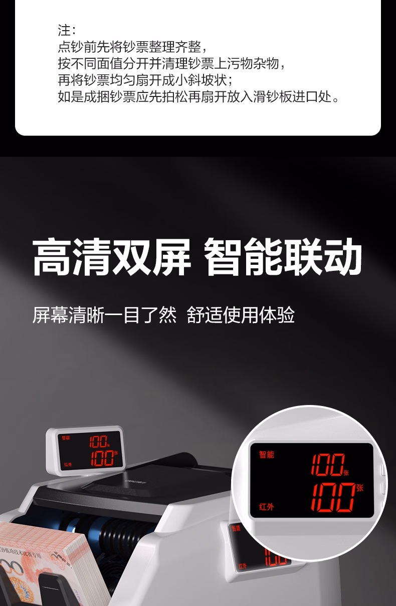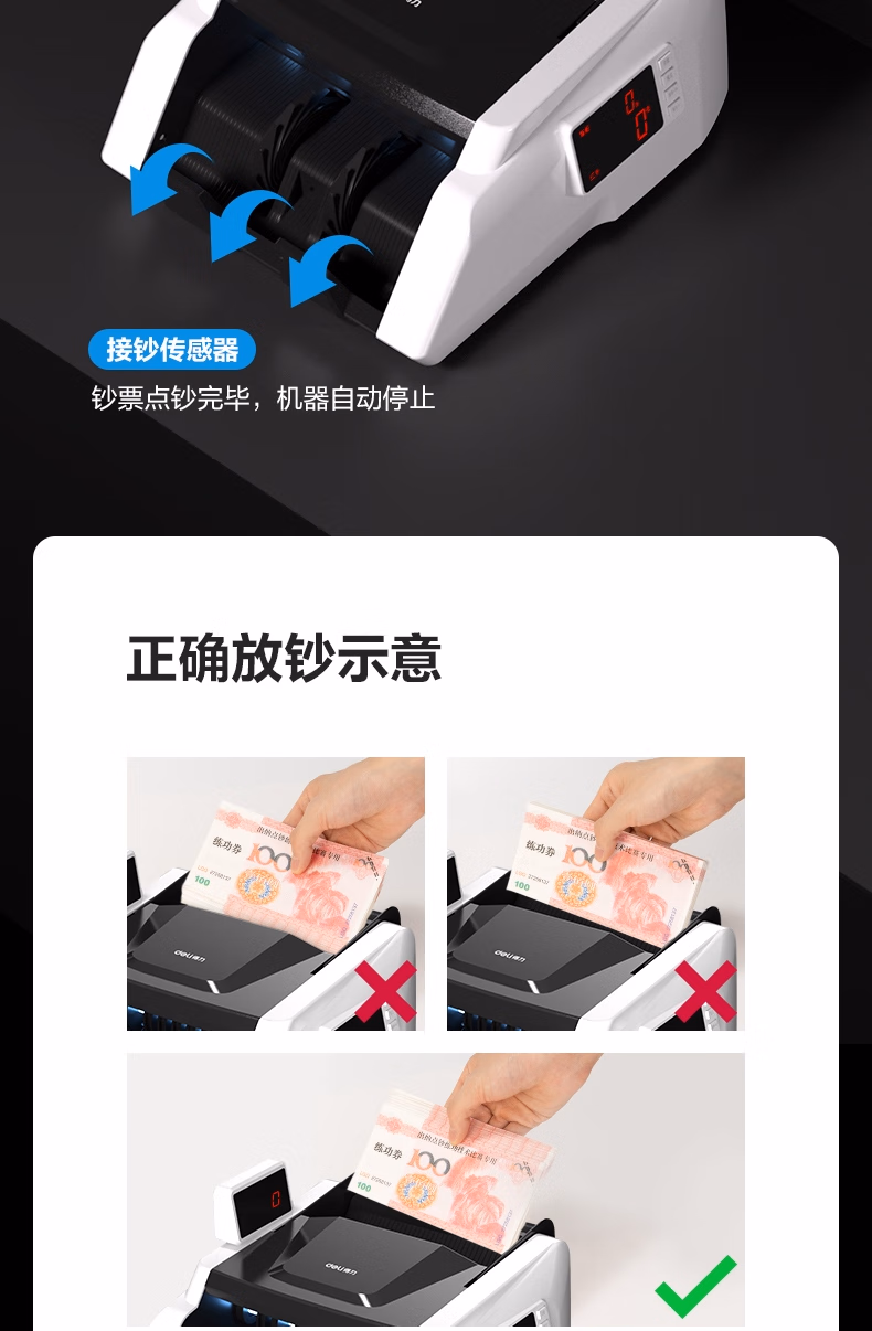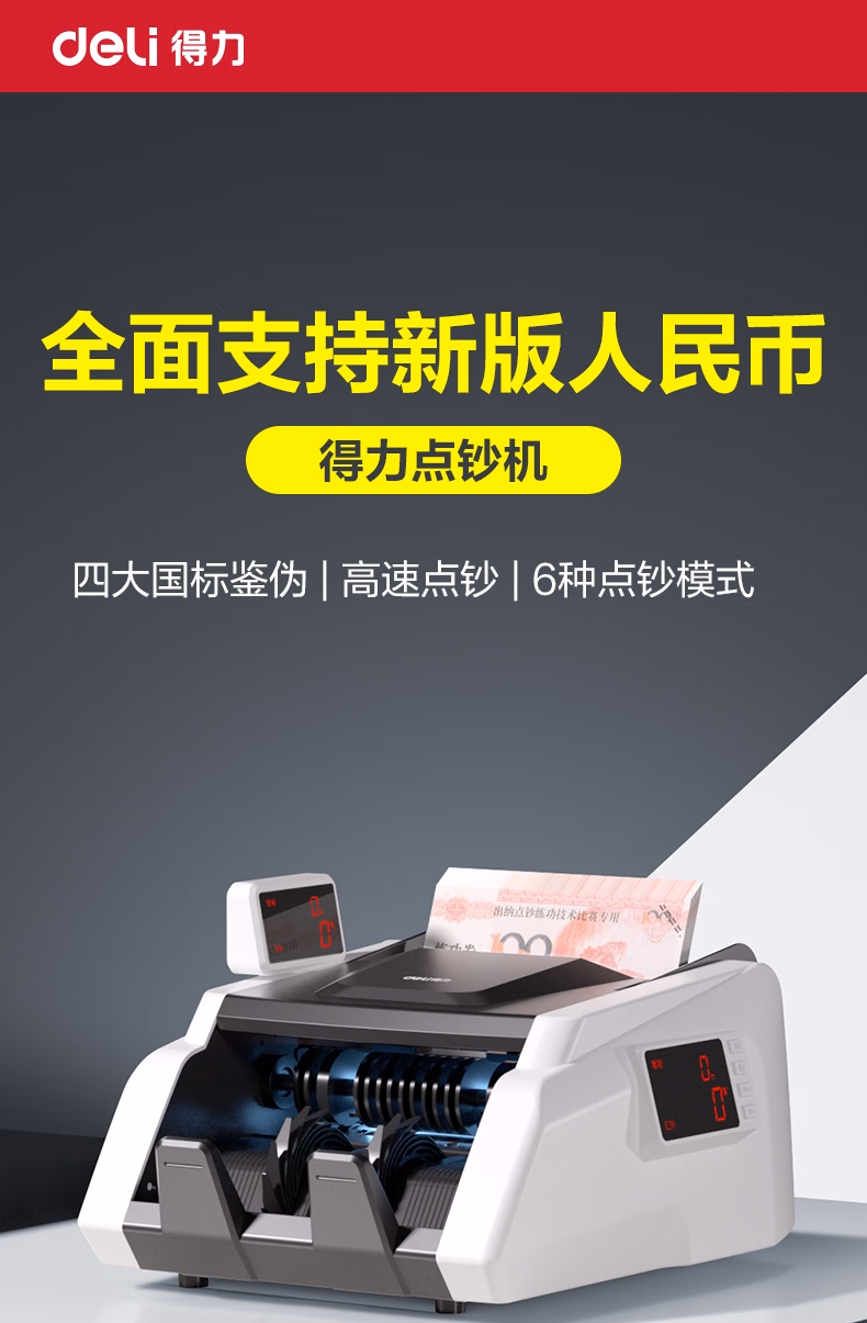 > 得力点钞机 验钞点钞机小型便携 验钞支持新版人民币 银行专用商用家用验钞收银支付点钞数钱机C类双屏