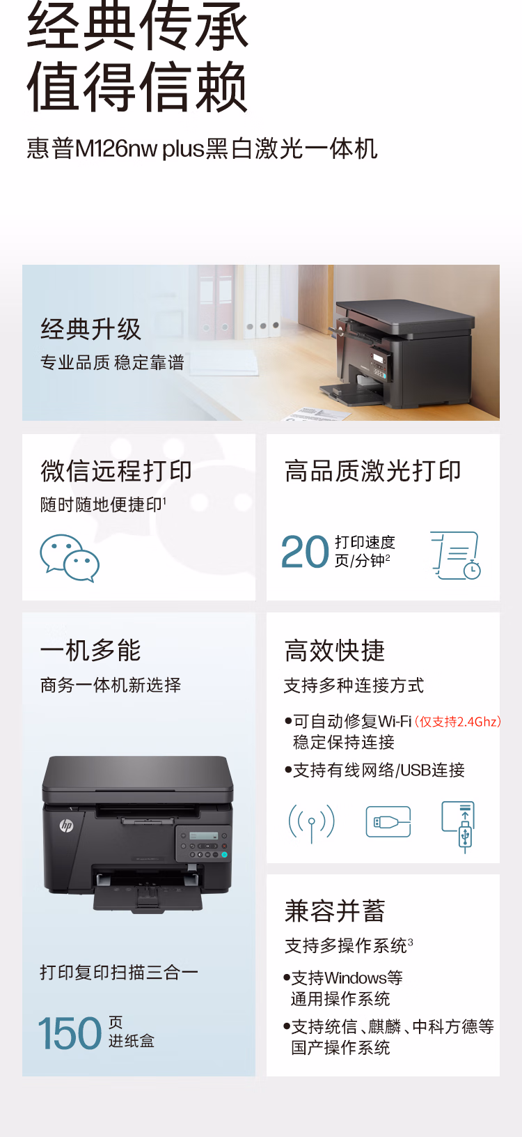 惠普(HP)M126nw黑白激光无线多功能打印机(打印 复印 扫描) 升级型号为1188nw