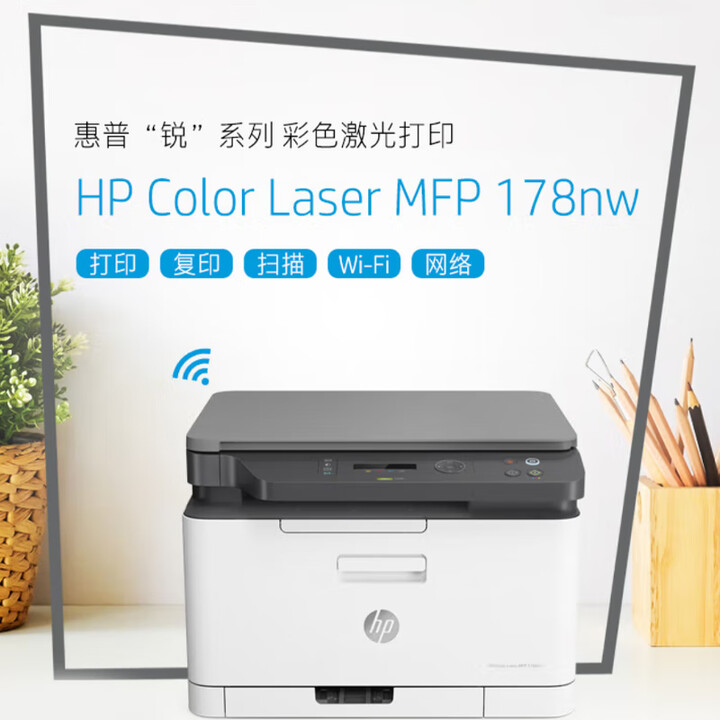 惠普 (HP) 178nw 锐系列 彩色激光多功能一体机三合一打印复印扫描无线 M176n升级款