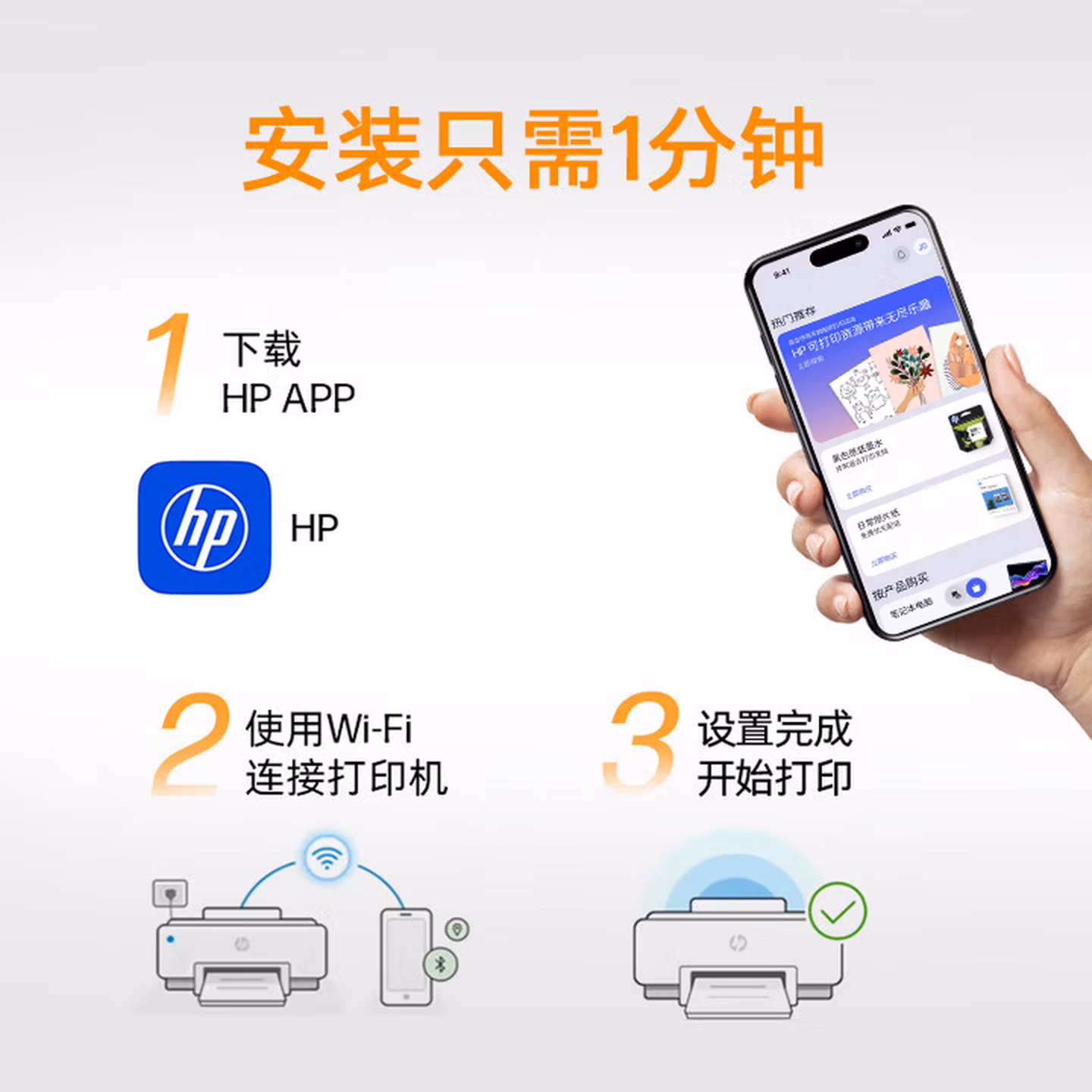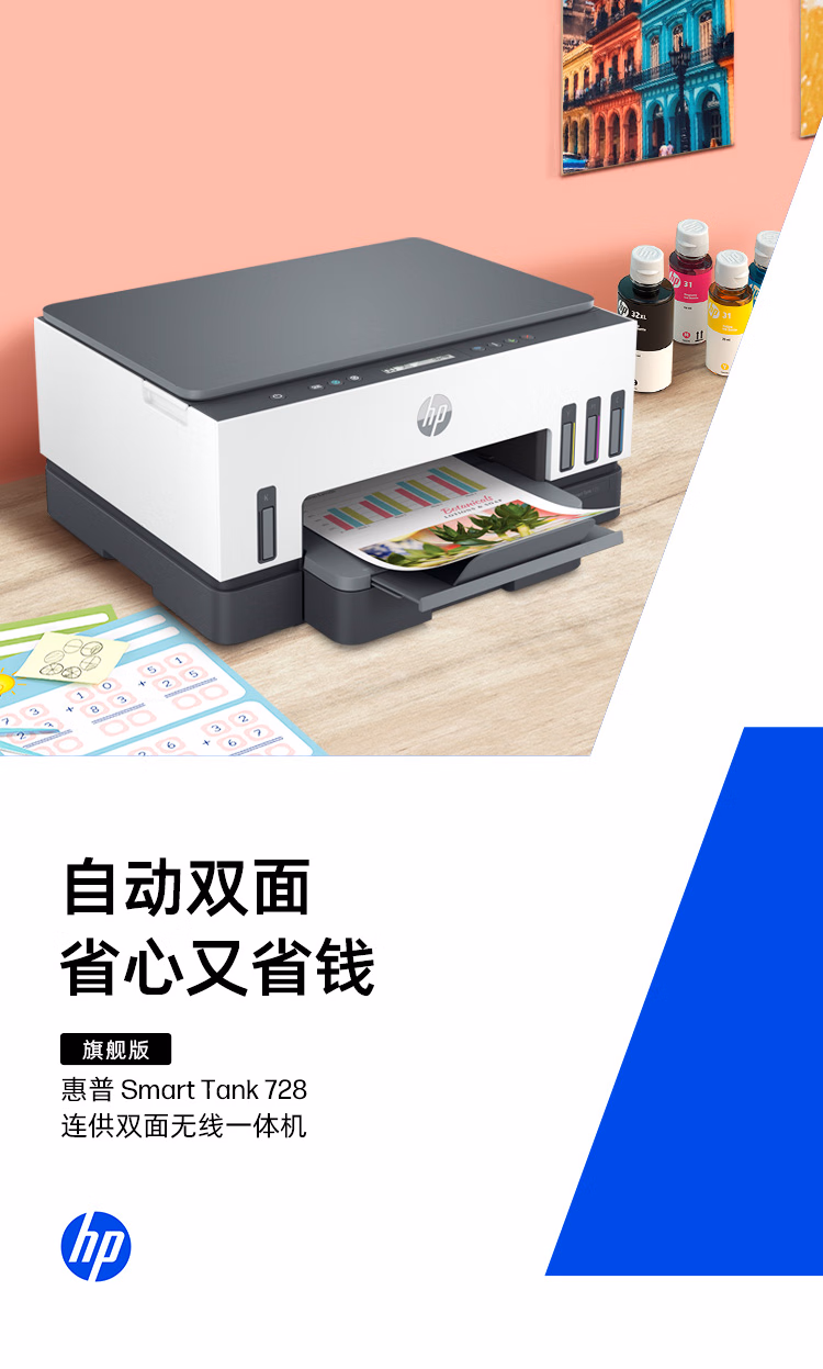 惠普(HP)728 连供无线打印一体机 自动双面三合一彩色打印机家用 打印复印扫描商用办公单页成本1分钱