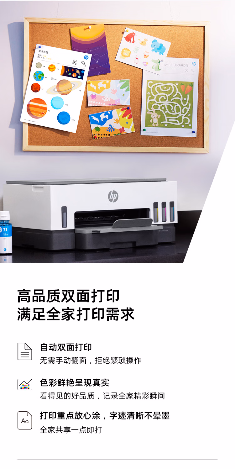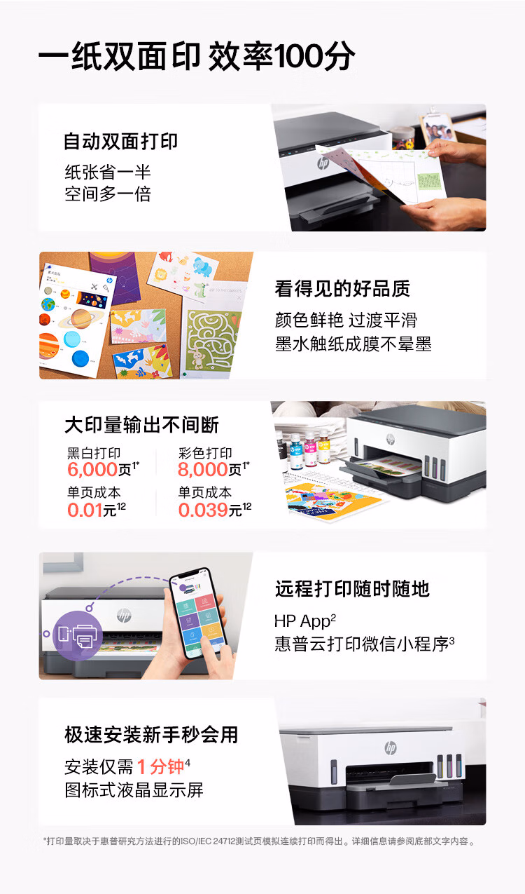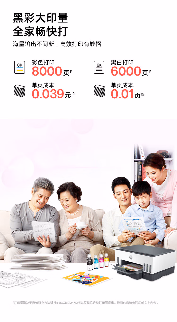 > 惠普(HP)728 连供无线打印一体机 自动双面三合一彩色打印机家用 打印复印扫描商用办公单页成本1分钱