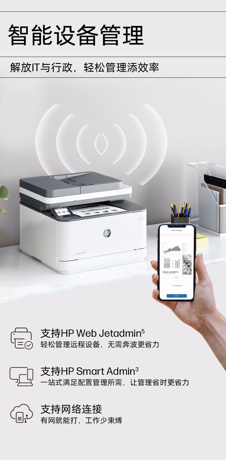 惠普(HP)3104fdw自动双面黑白激光无线打印机 自动输稿 打印复印扫描传真四合一一体机 智能管理