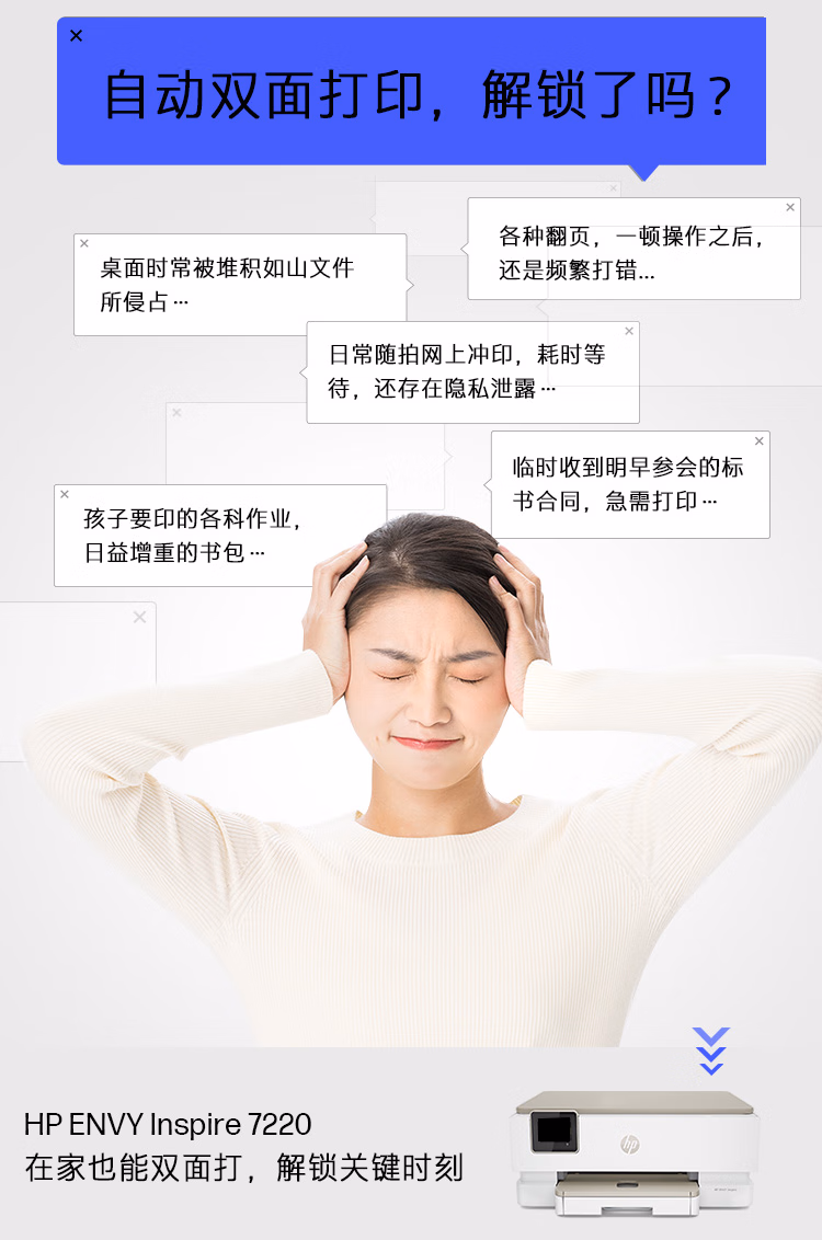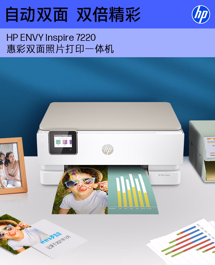 惠普(HP)7220无线双面彩色多功能打印机 无边距打印复印扫描 照片打印