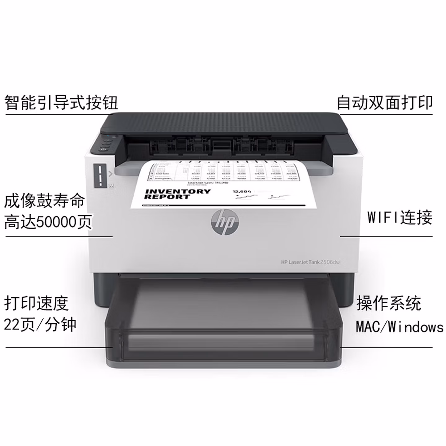 惠普(HP)2506dw双面激光无线单功能大粉仓打印机印量升级 SOHO商用