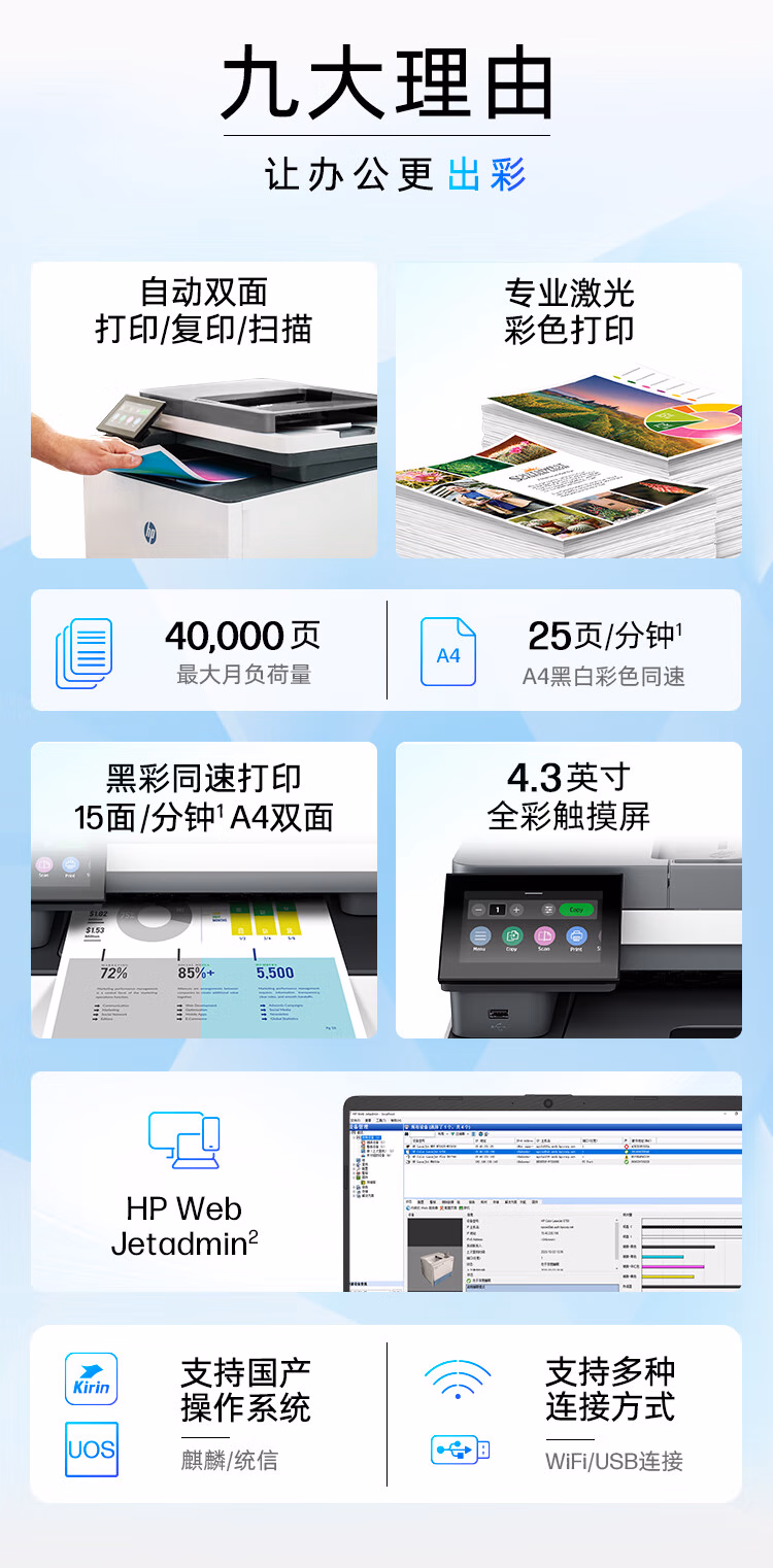 > 惠普(HP)3388fdw 彩色激光多功能一体机 无线打印复印扫描自动输稿 支持有线 快速打印商用办公