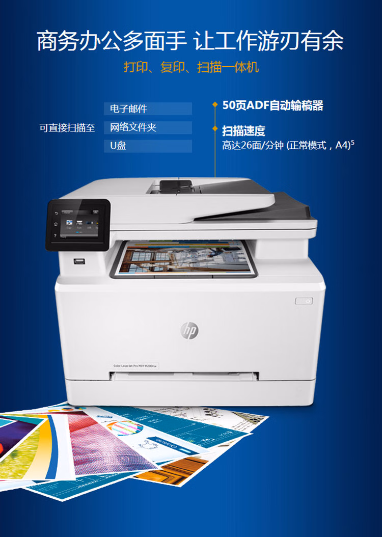 惠普(HP)M280nw彩色激光多功能一体机 无线打印复印扫描 支持有线 快速打印商用办公
