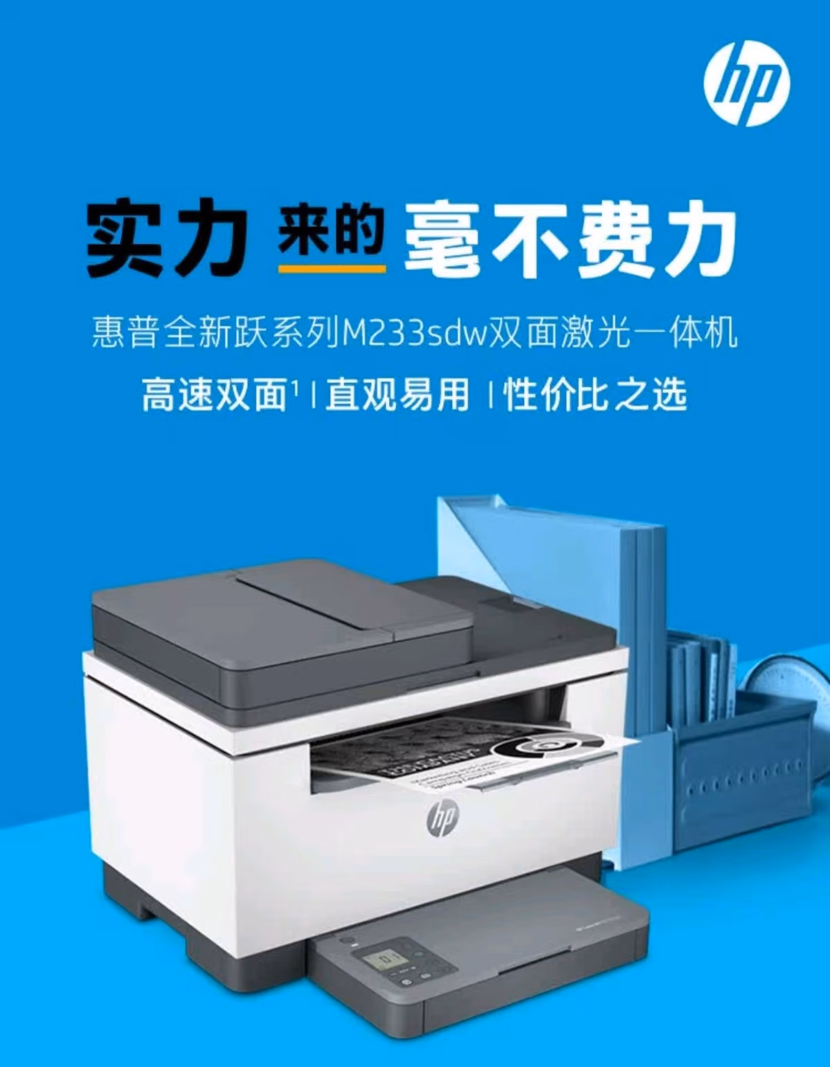> 惠普M233SDW 黑白激光 三合一(打印 复印 扫描)自动双面 带无线 输稿器29页/分钟 多功能一体机