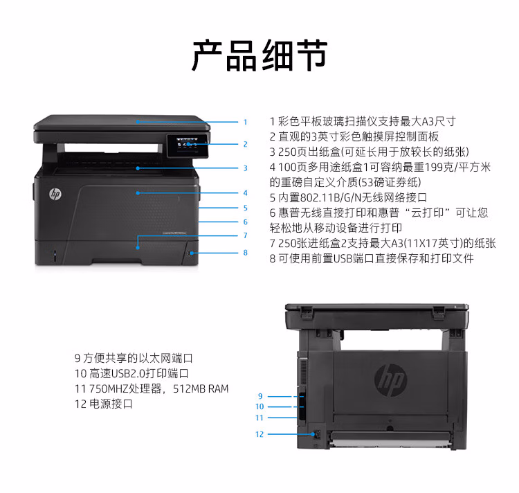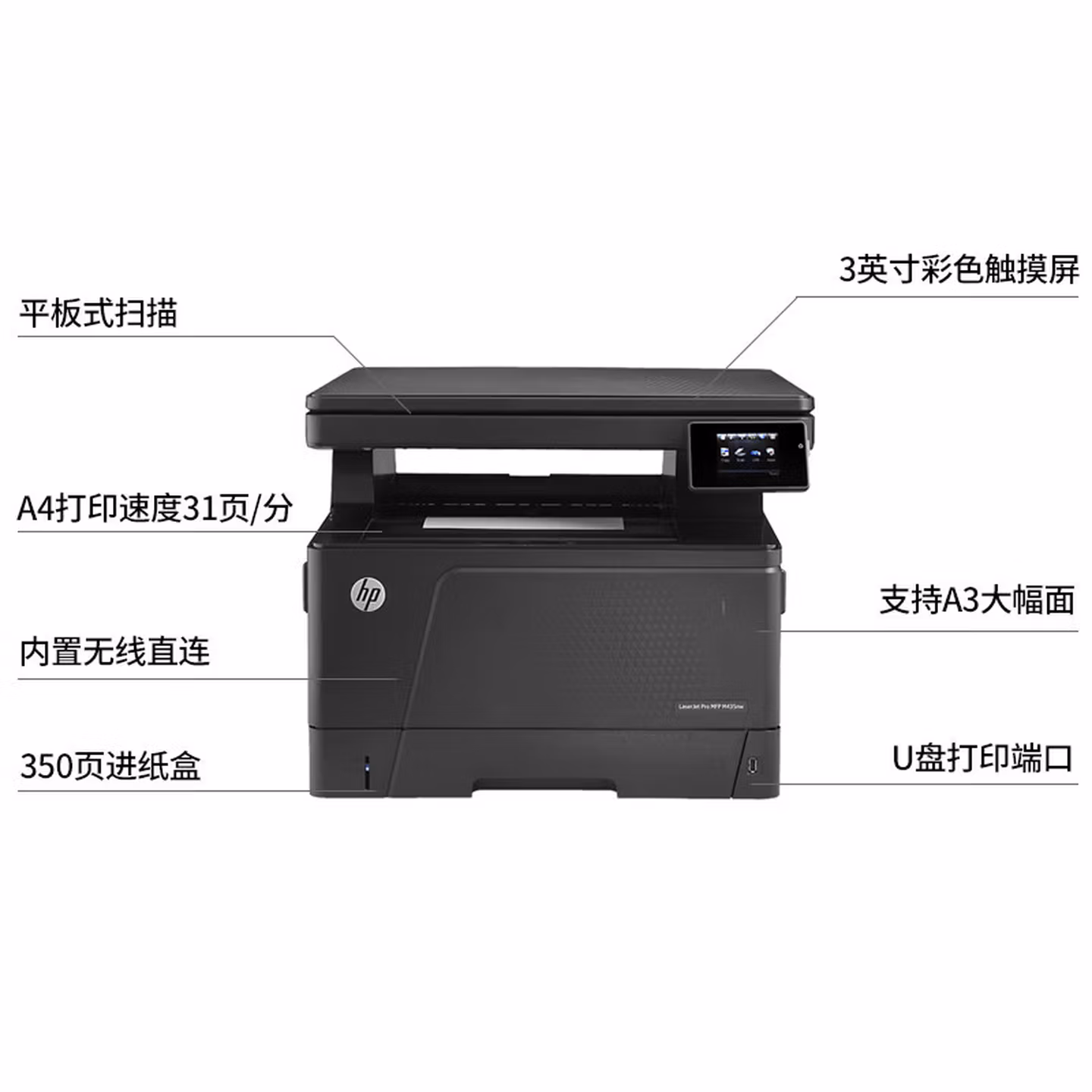 > 惠普(HP)M435nw黑白激光A3数码复合机工作组 多功能 打印 复印 扫描 无线连接