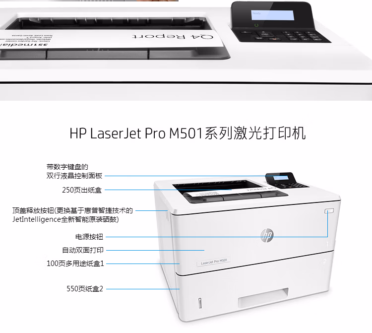 > 惠普 (HP) M501dn双面单功能有线激光打印 高速稳定 安全打印 商用企业级打印机