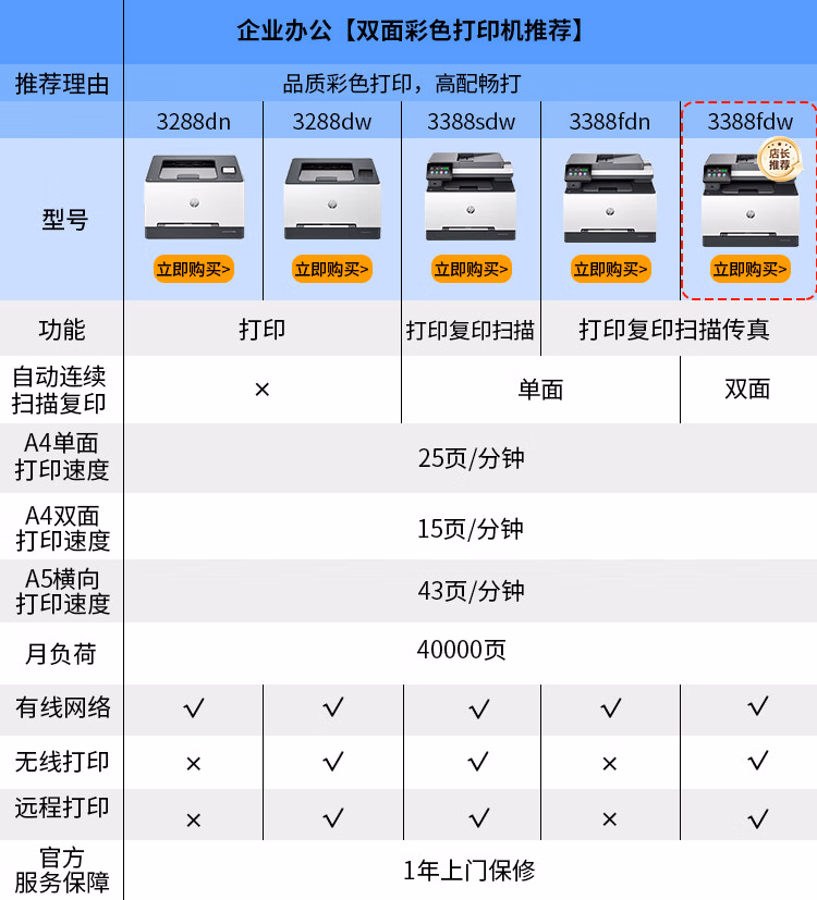> 惠普(HP)3288dw双面彩色激光打印机 无线远程打印 骑缝章红头文件打印 家用办公彩印