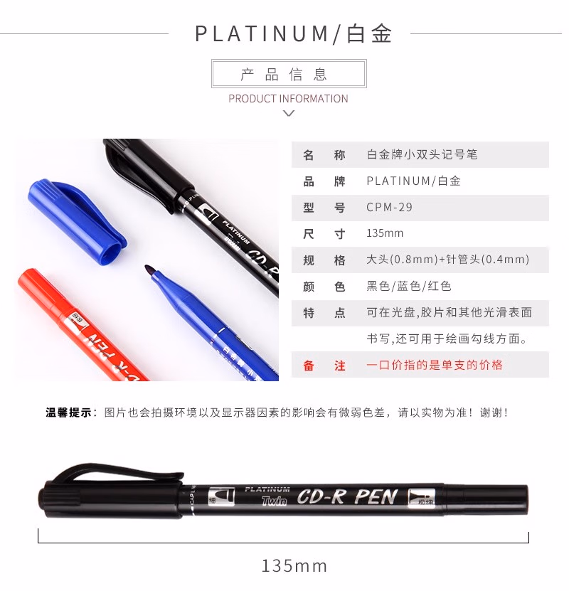 > 白金小双头记号笔 CPM-29 2.0-4.5mm 红色
