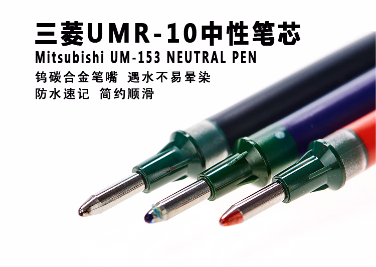 > uni三菱中性笔芯考试专用大容量笔芯UMR-10速干顺滑按动黑色水笔芯办公签字笔替换芯啫喱笔芯 黑色1.0mm 12支装