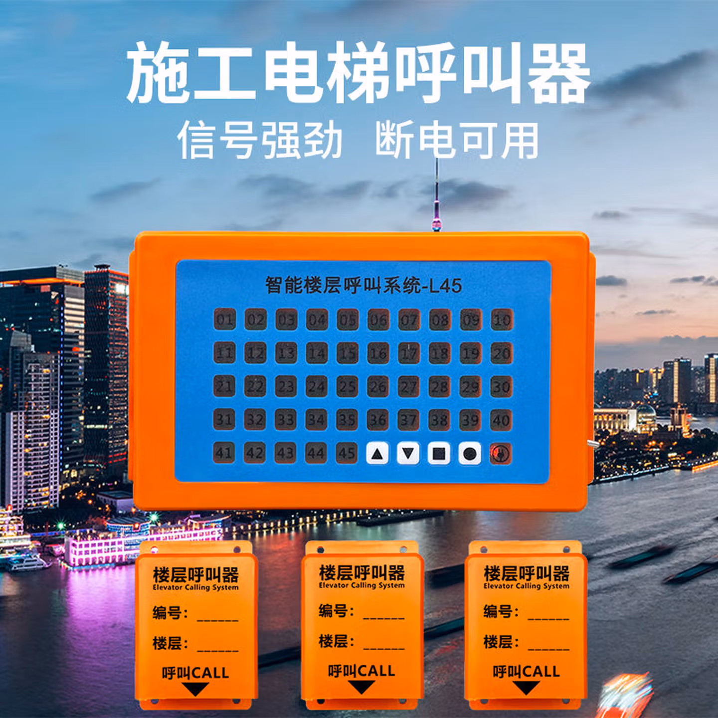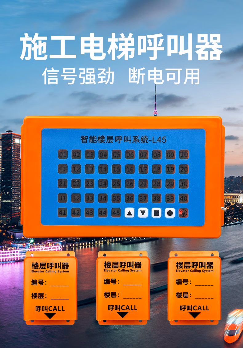> 楼层呼叫器施工电梯楼层呼叫器人货梯升降机呼叫铃建筑工地呼 1台室内主机+25个大功率呼叫器
