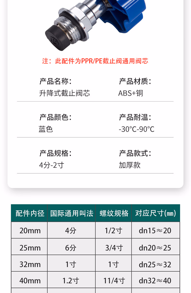 > 龙代(longdai)PPR升降式截止阀 加厚铜芯水阀开关阀门 蓝色手轮4分(20mm)