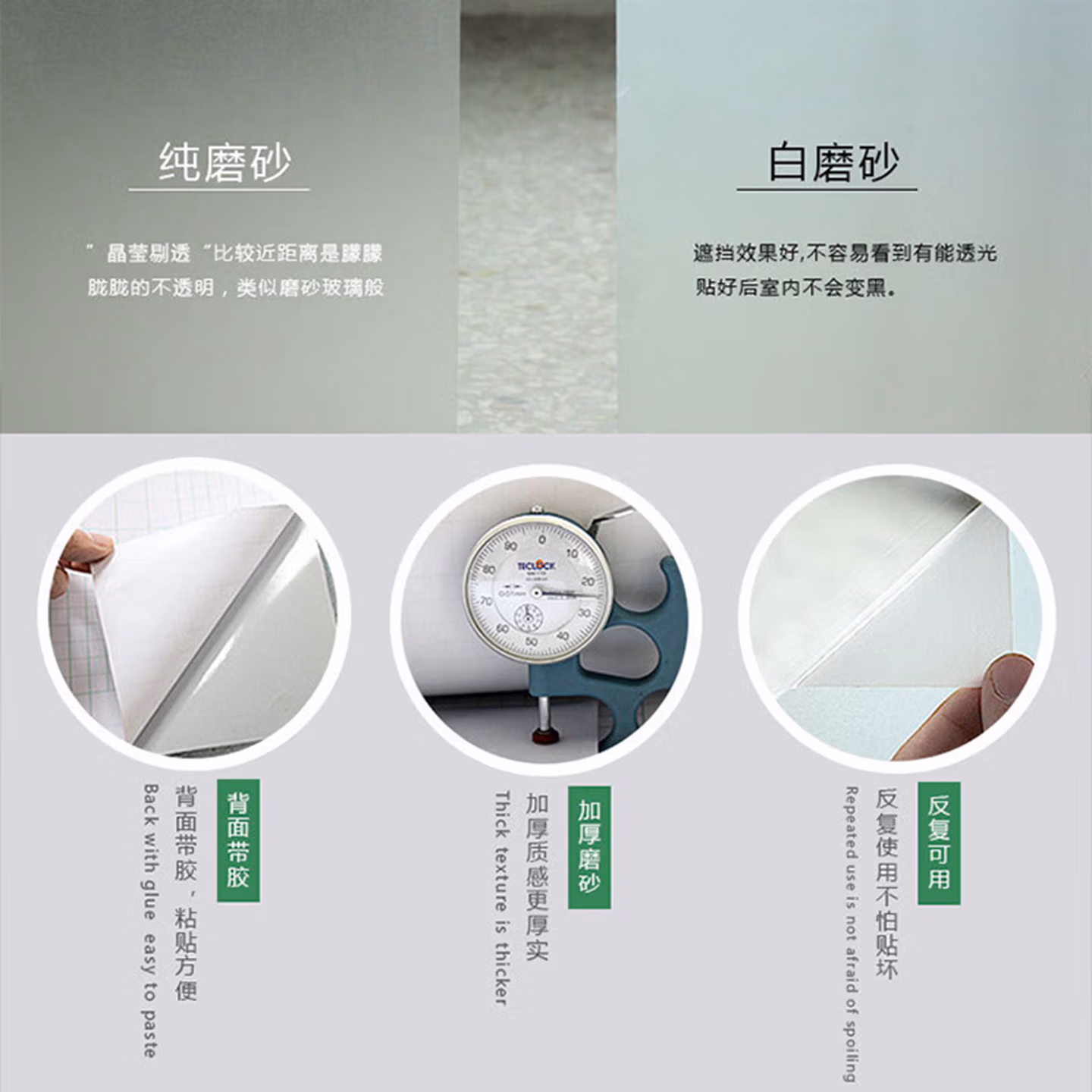 > 海斯迪克 玻璃贴膜透光不透明 加厚自粘PVC玻璃贴纸 纯磨砂90cm(50米/卷)) HKA-35