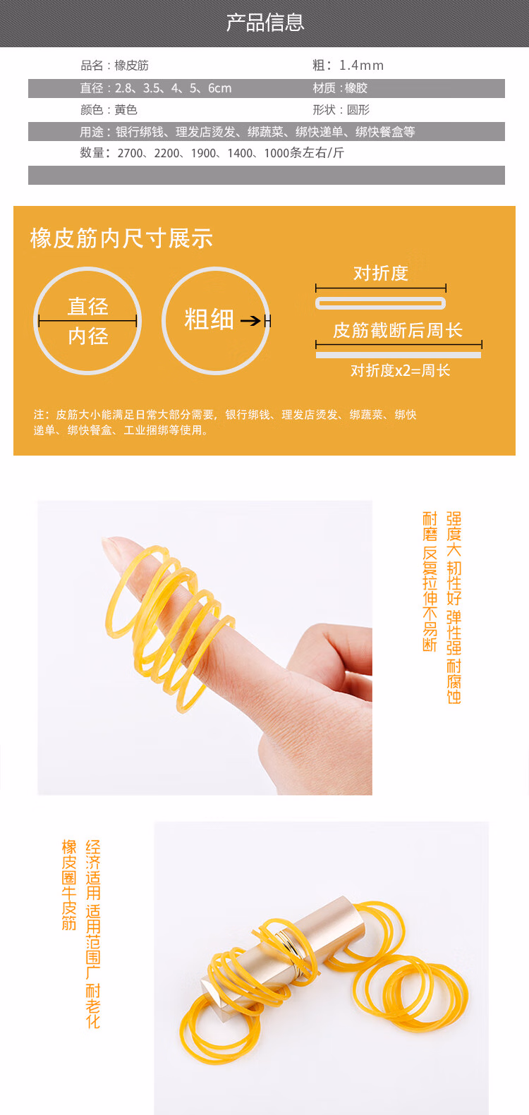 > 海斯迪克 gnjz-1029 高弹力橡皮筋 黄色圆形牛皮筋 办公橡胶圈 60黄(直径6cm)500g