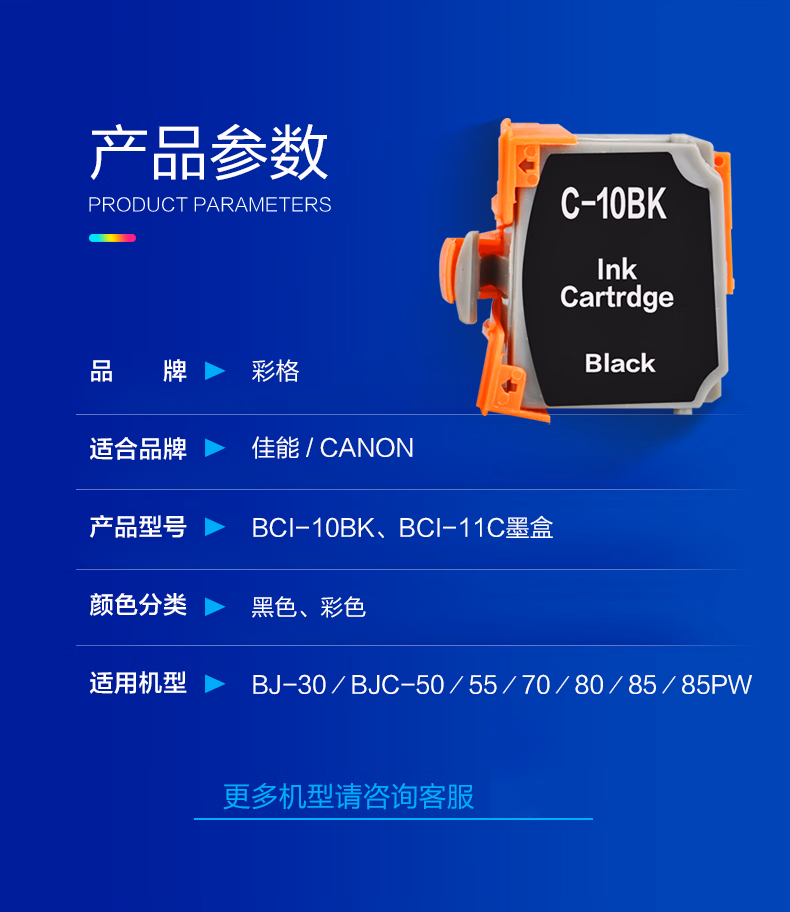 > 彩格适用Canon佳能 BJ-30/50/55彩色打印机油墨水盒BCI-10BK墨盒BCI-10BK 11C彩色墨盒