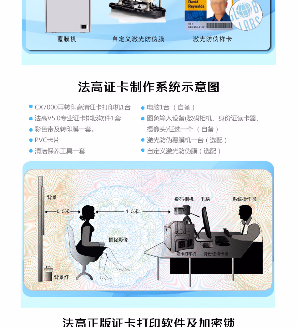 > Fagoo 法高证卡打印机JVC CX7000高清热升华再转印PVC卡片打印机制卡机 匹配专业色带 标配