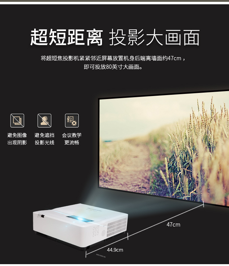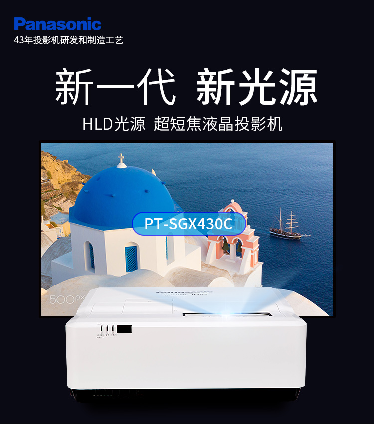 > 松下(Panasonic)PT-SGX430C 超短焦投影机 办公教育投影仪(标清 HLD光源 4300流明 XGA)